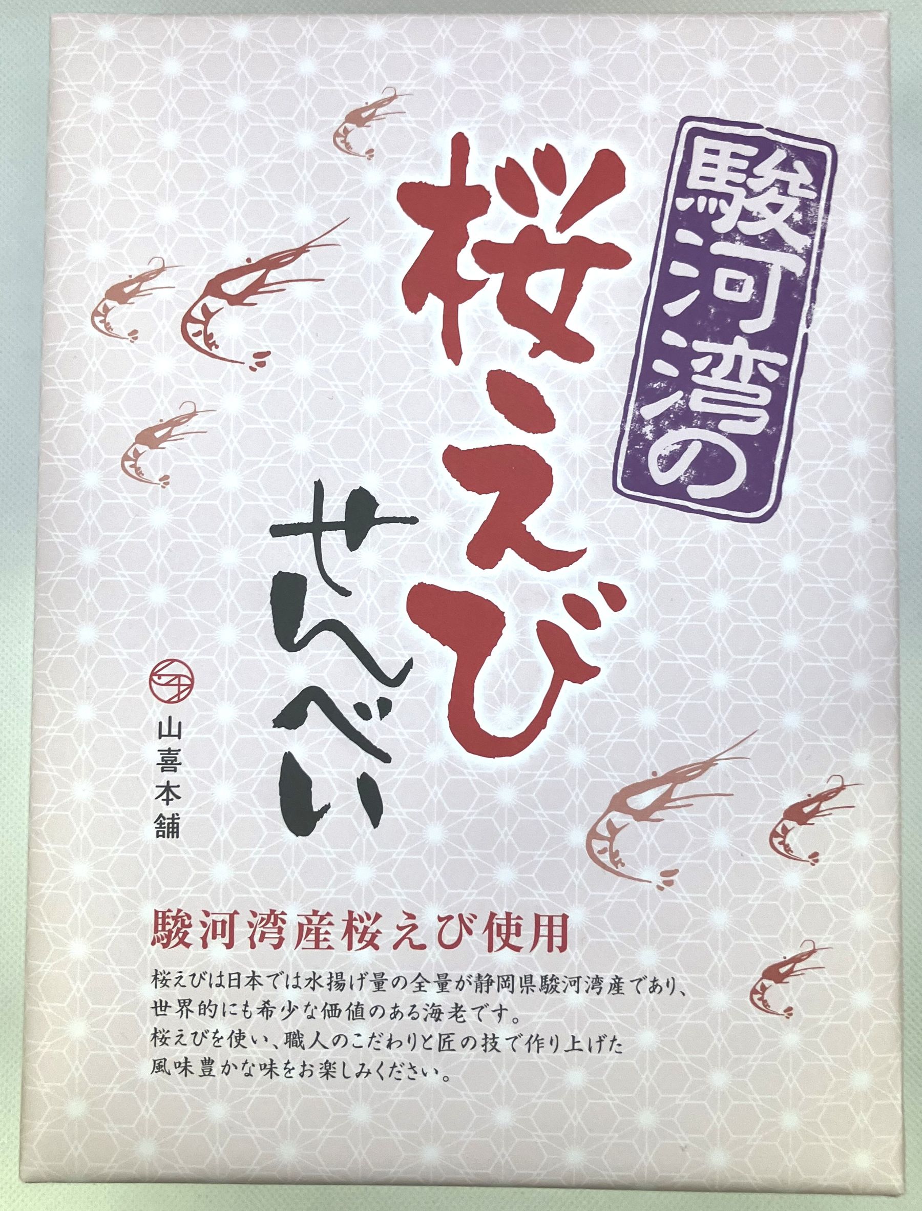 日本では駿河湾でしか漁獲されない"桜えび"を馬鈴薯澱粉に練り込み、薄く大判に焼き上げた煎餅です。