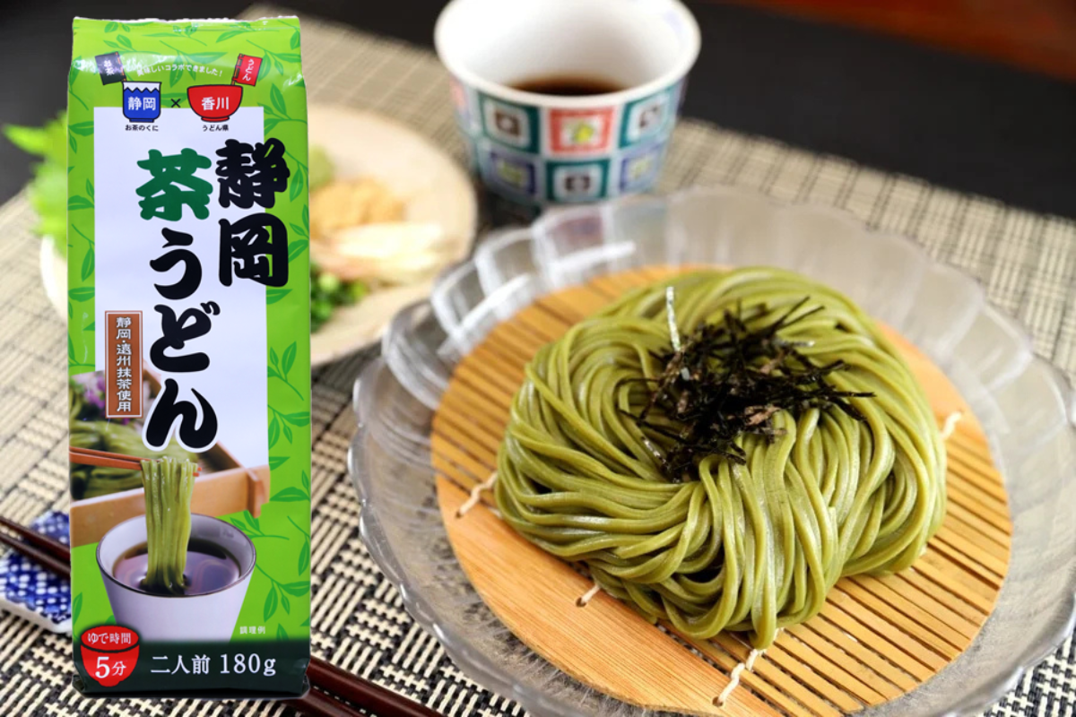 浜松市天竜区産の抹茶を練り込んだうどん(乾麺)です。上品でさわやかな抹茶の香りと、モチモチとした食感、強いコシが持ち味の麺に仕上げました。