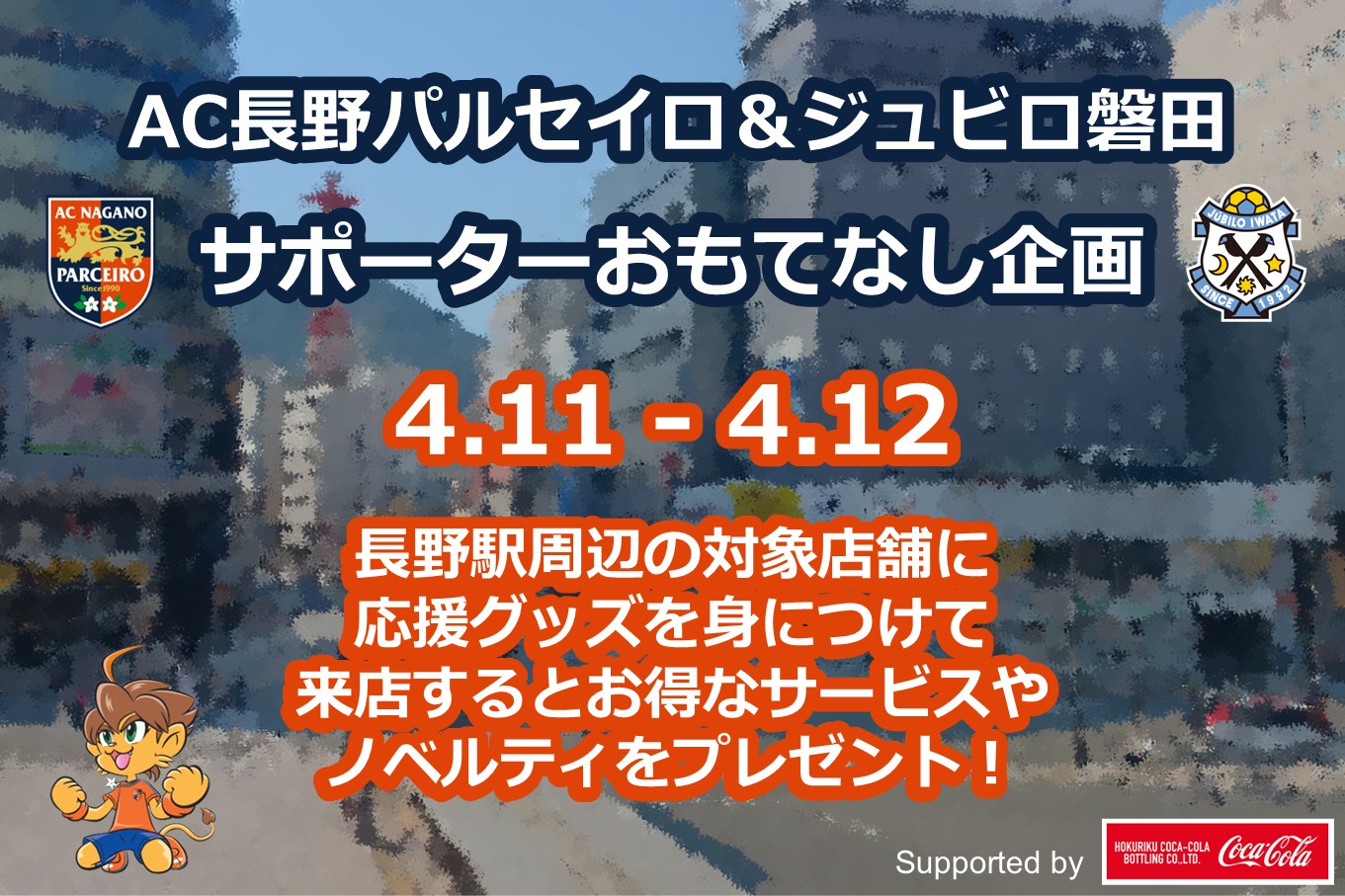 ジュビロ磐田サポーターの皆さま、ようこそ長野へ!長野を楽しんでいただくため、おもてなしイベントをご用意!ぜひ長野を楽しんでいってください!