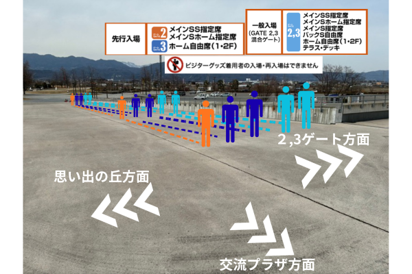 ※入場待機列確保(シート貼り)は試合当日8:00から開始となります。時間前の確保(シート貼り)はご遠慮ください。