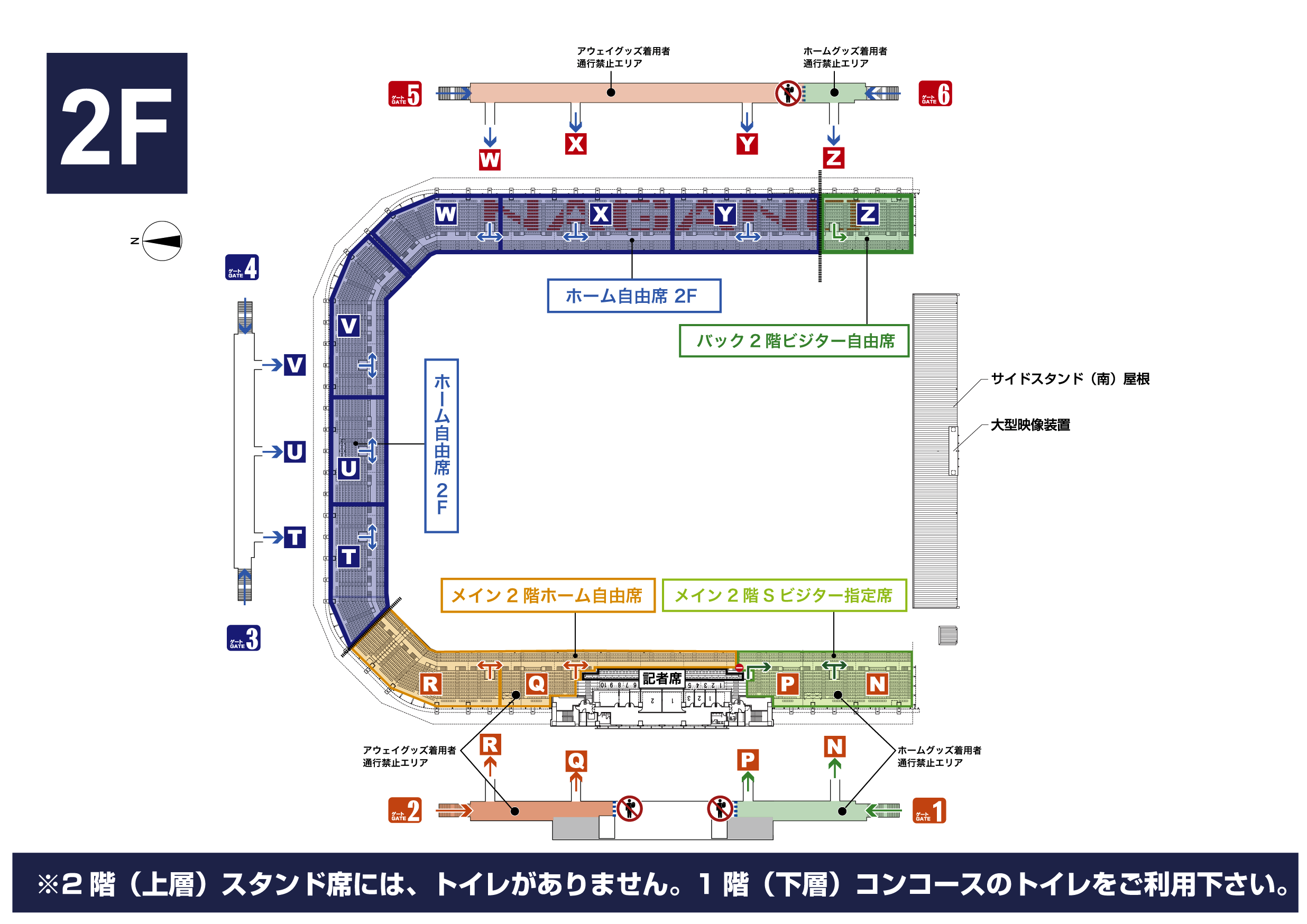 ・アウェイ自由席でホームユニフォームやホームグッズを身に着けての応援・観戦は出来ません。