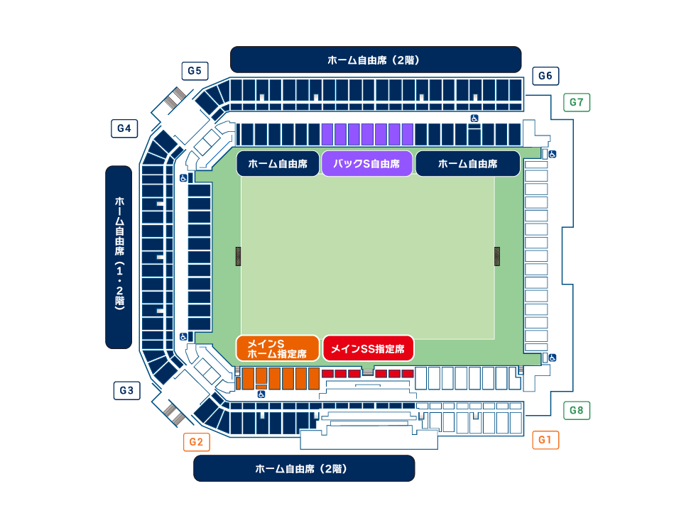 ● メインスタンド2階席は『ホーム自由席』としての運用に変更いたします。
