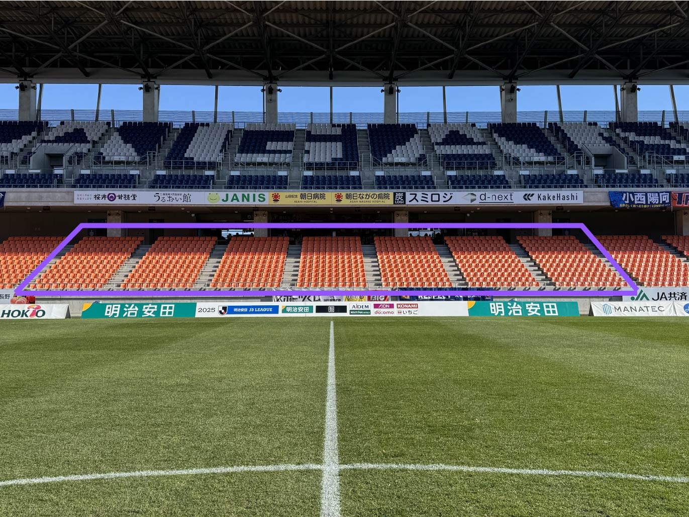 エリア内での着座は自由、ビジター(アウェイ)サポーターの方もお座りいただけるエリアとなります。