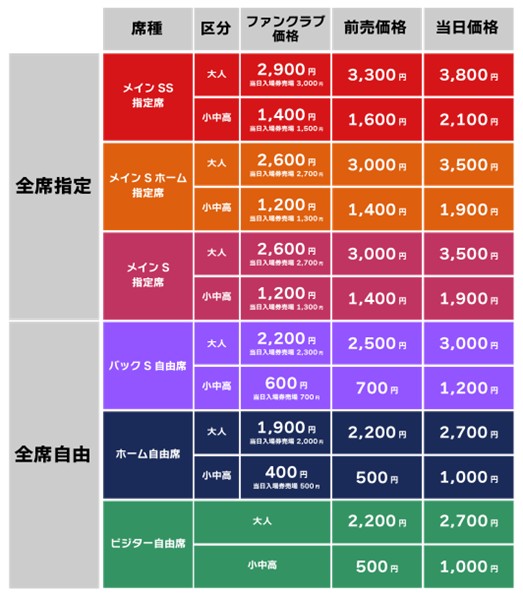 販売席種・価格