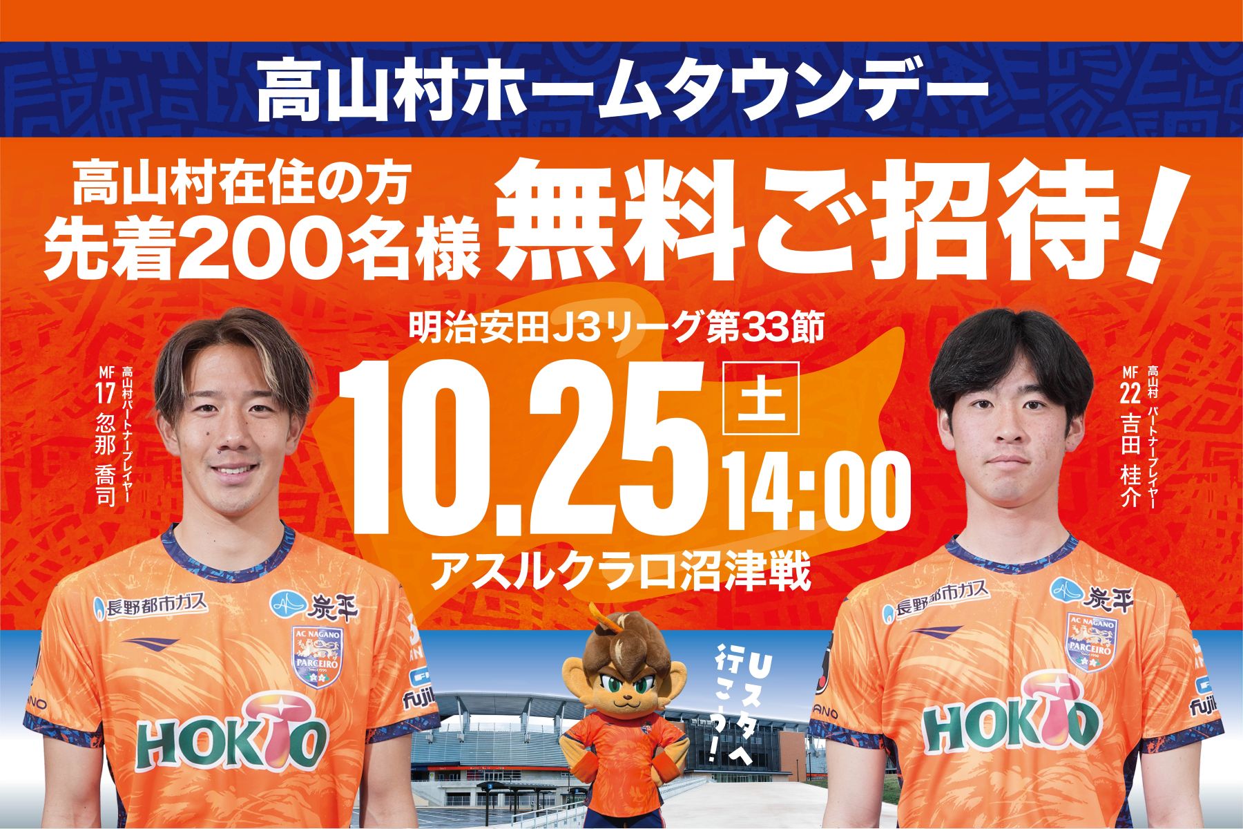 10/25(土)沼津戦は、高山村在住の方無料招待です!
