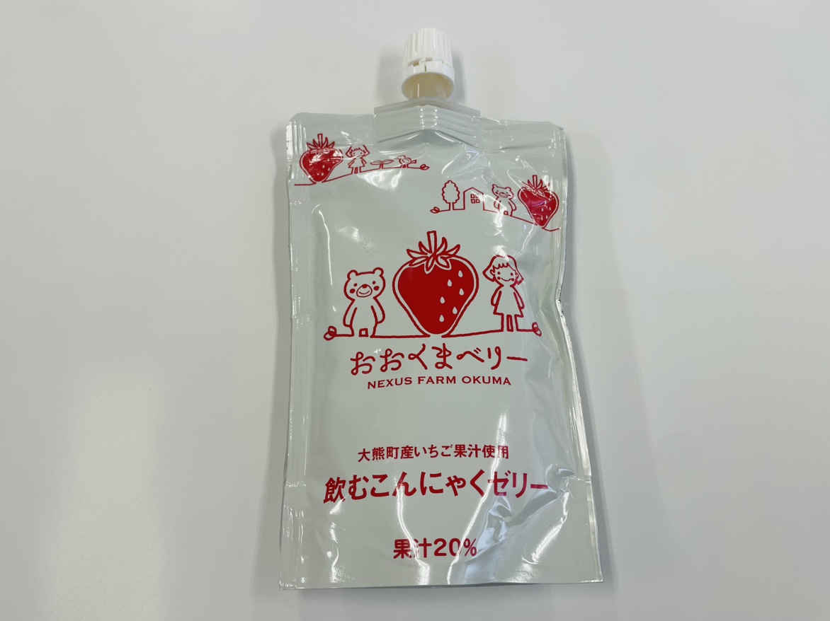 果汁はネクサスファームおおくまで生産したいちごのみを使用しています。また、原料で使われているこんにゃく粉も福島県産です!