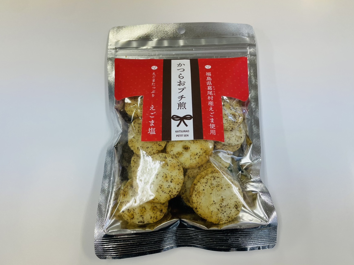 村内産のエゴマときな粉を使用した煎餅。煎餅の肝となるうるち米は福島県会津産を使用して造っています。また添加物は一切使用していません。煎餅ならではのサクサクとした軽い歯応えが特徴で、子供からお年寄りまでみんなが楽しめる逸品になっています。
