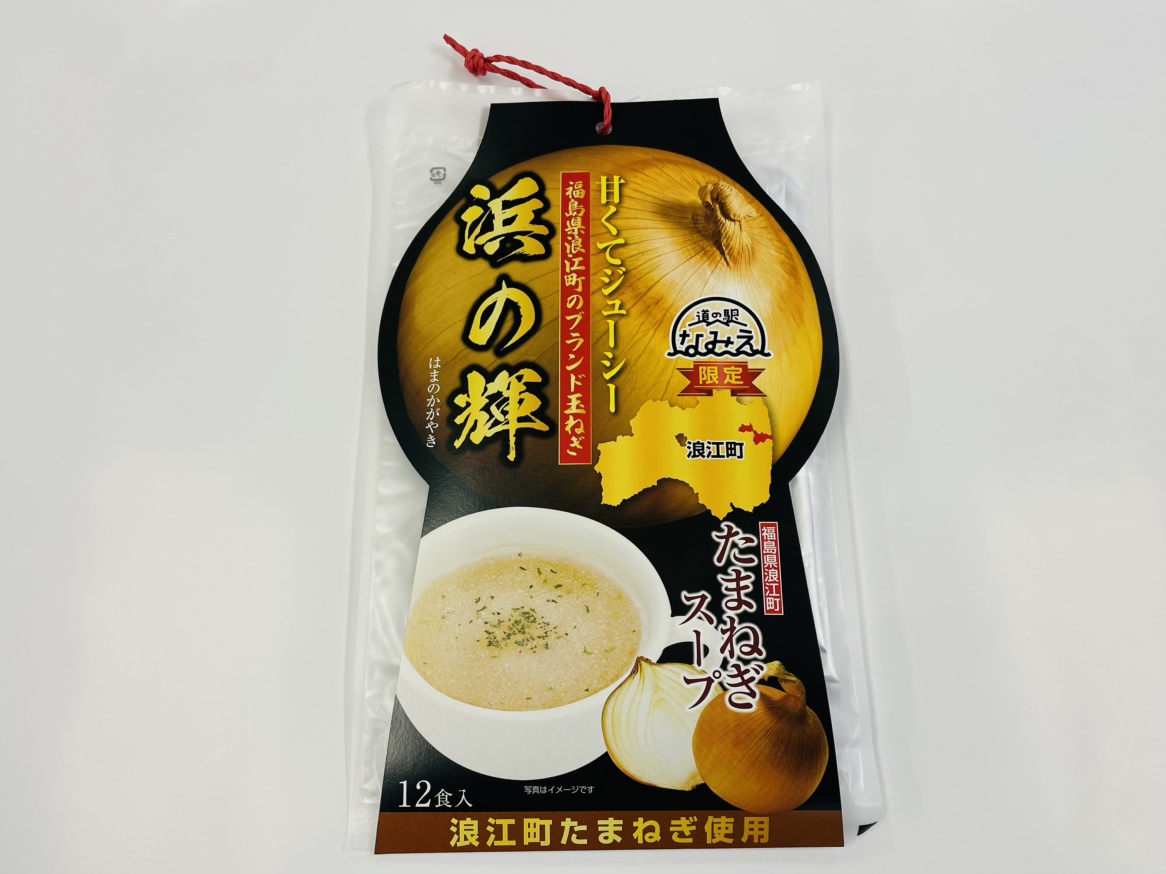 福島県浪江町の甘くてジューシーなブランドたまねぎ『浜の輝』のたまねぎスープ。お湯を入れるだけ!簡単、便利。1杯分ずつ個包装になっています。甘みとコクがいっぱいつまった美味しいたまねぎスープです!