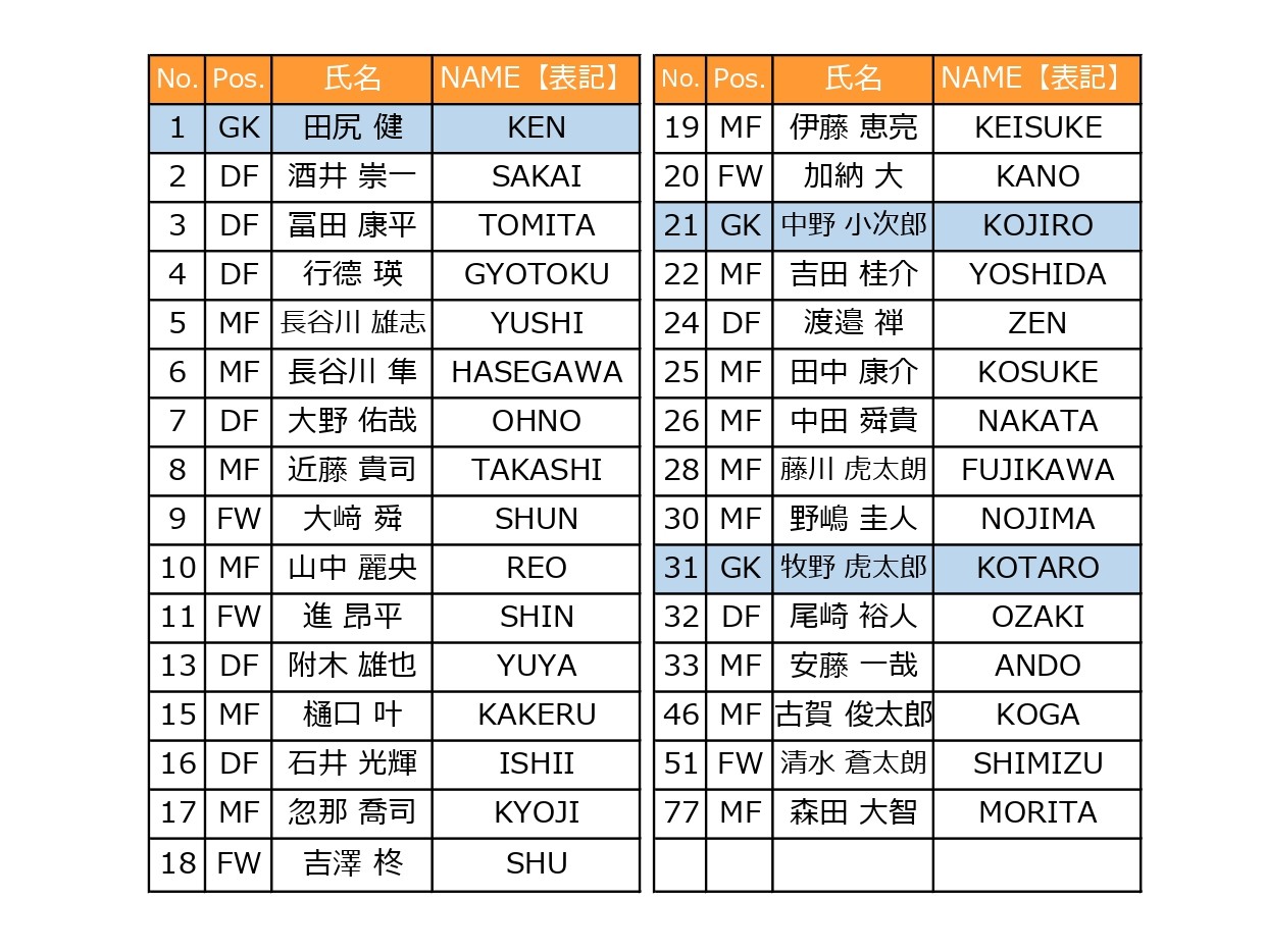 ・所属選手(登録された背番号)と背番号12のみの受付となり、他のオリジナル背番号(例:99など)はお受けできませんので、あらかじめご了承ください。
