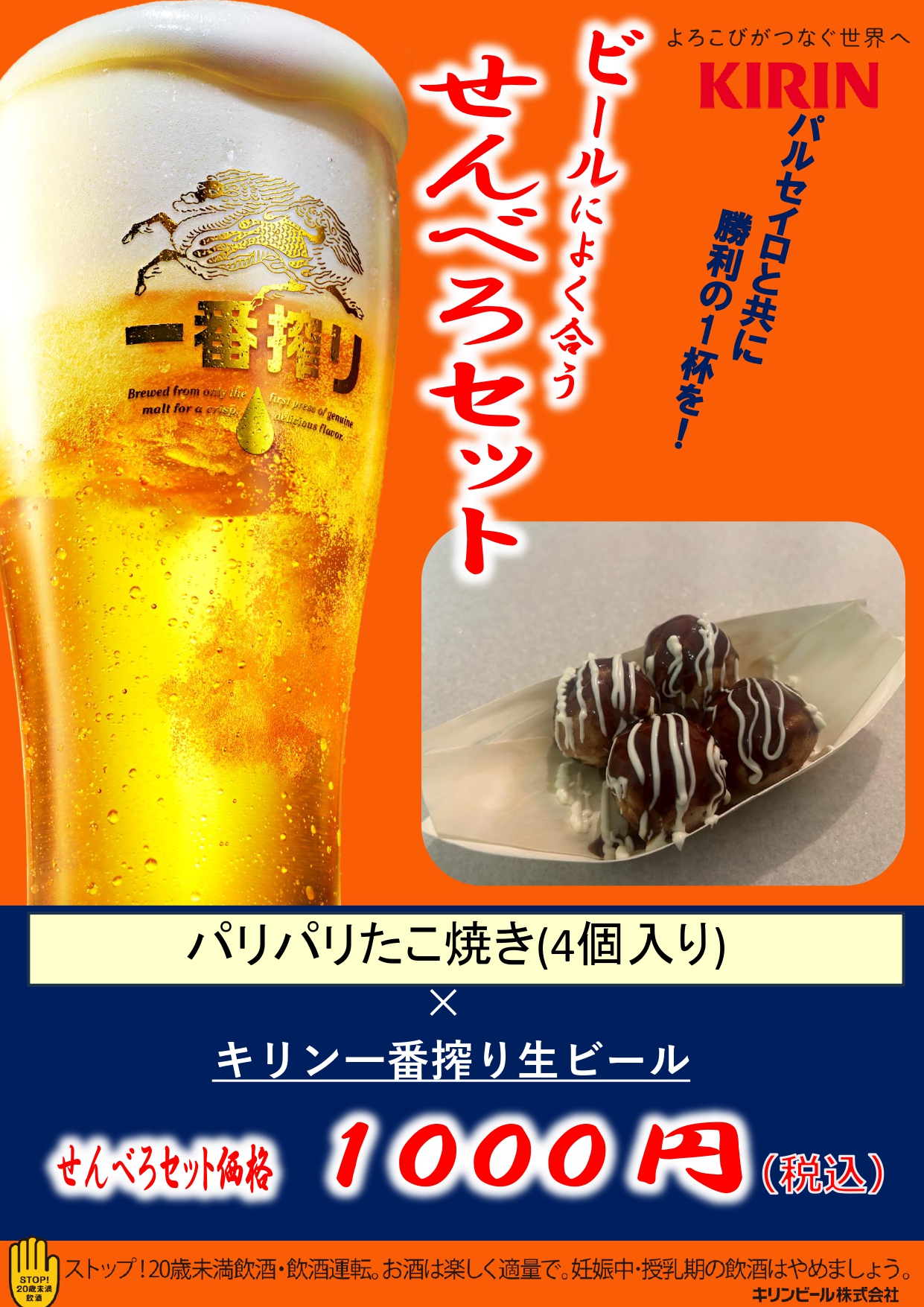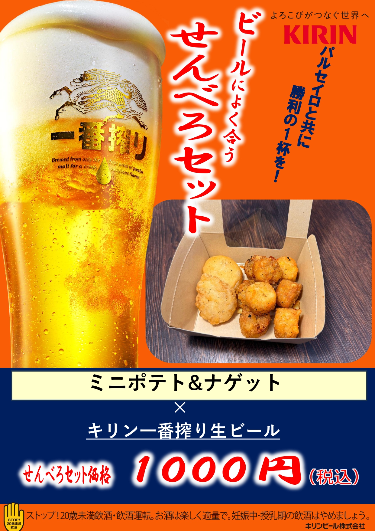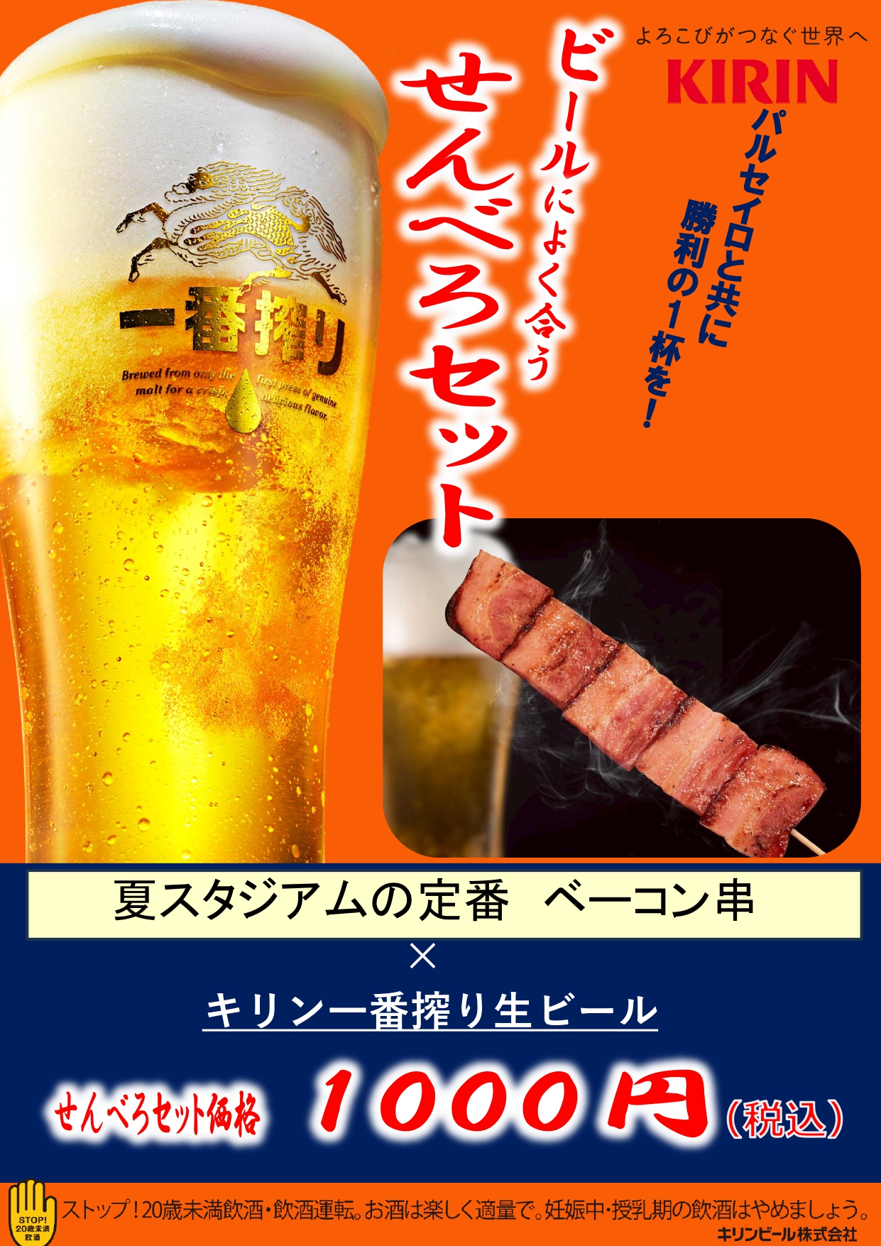 スタジアムグルメでは八戸戦限定で1000円で楽しめるせんべろメニューを販売!!せんべろメニューご購入者にはなんとステッカーをプレゼント!!
