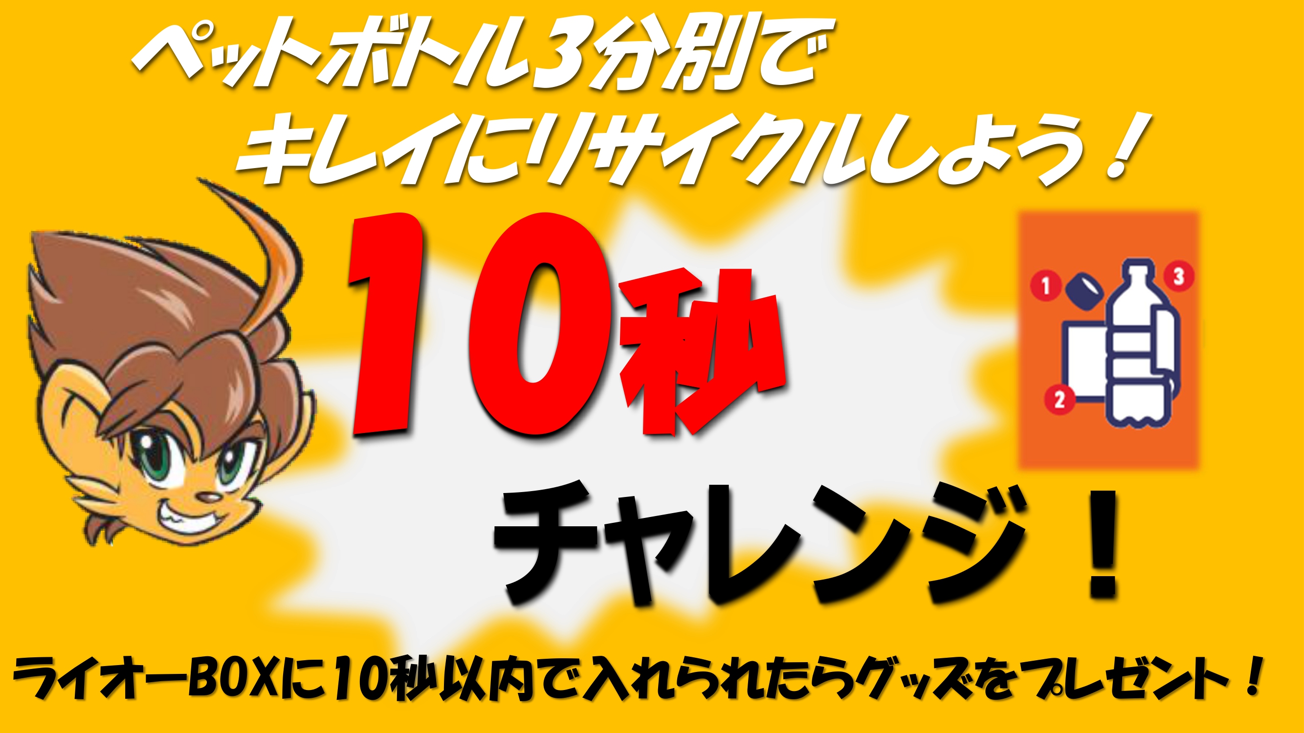 ペットボトルリサイクルボックスが新しくなりました!!ぜひ10秒チャレンジに参加し、グッズをゲットしてください!