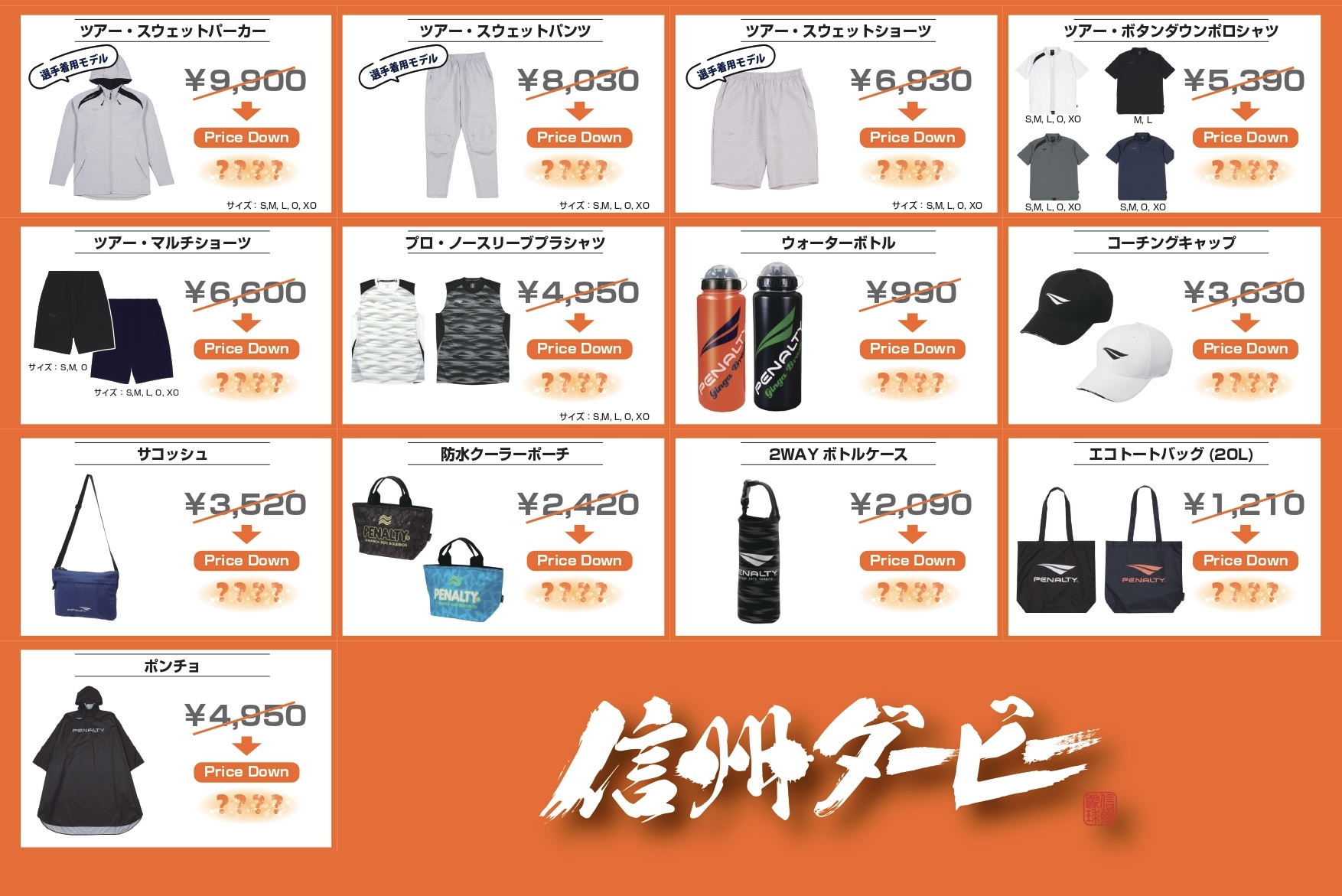 7月19日(土)長野Uスタジアムにて開催する「ダービー」に併せて、PENALTYブースが出店しますので、お知らせいたします。「オリジナルパーカー/オリジナルコーチジャケット」など、ぜひこの機会にお買い求めください!