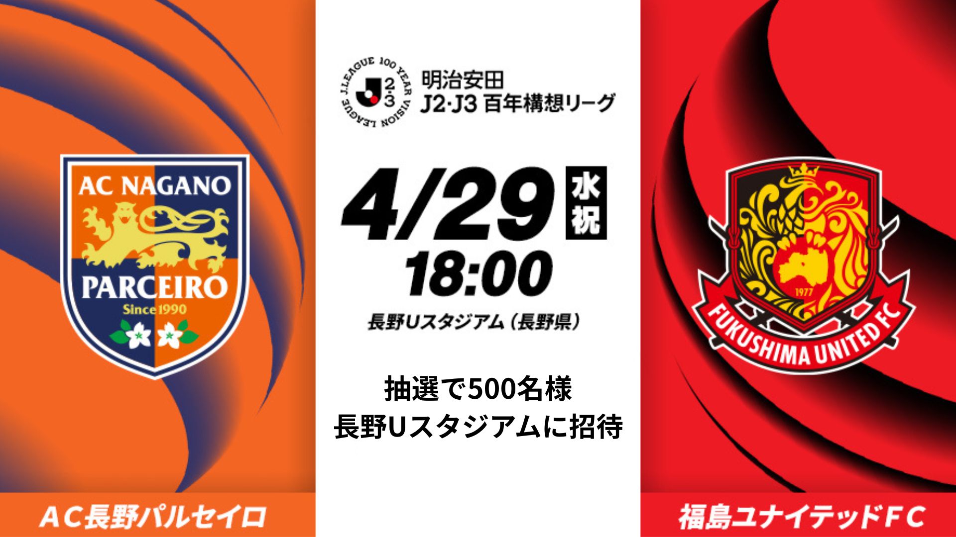 この試合は、JリーグGW招待キャンペーン対象試合となっています。500名様長野Uスタジアムにご招待!是非この機会にお申込みください!詳細はこちら