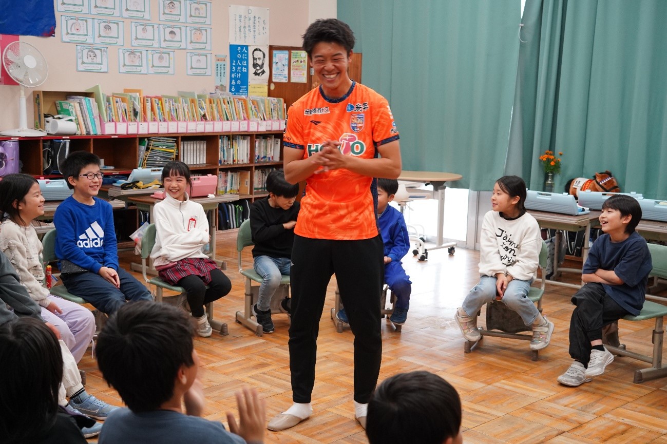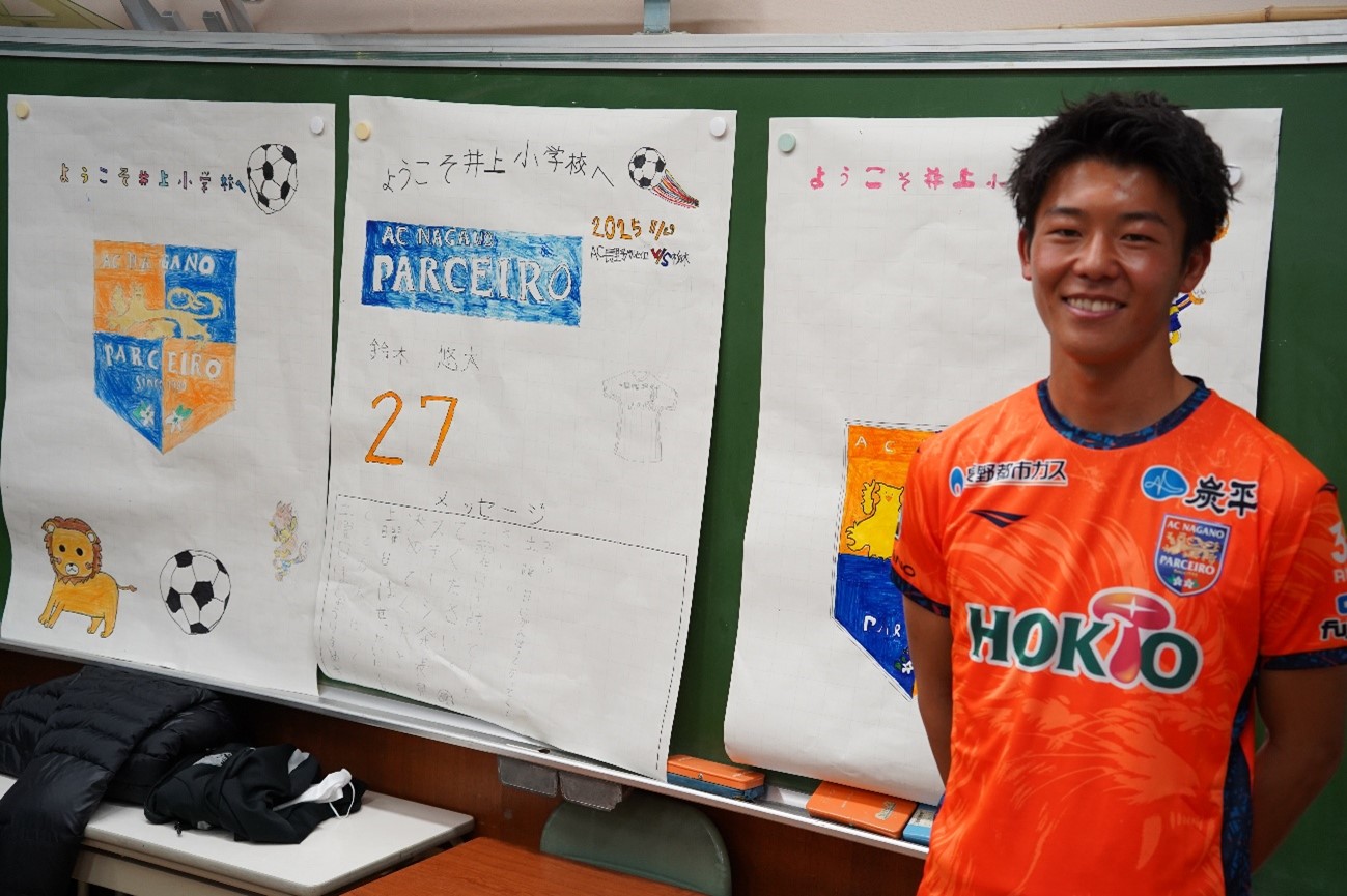 今回は、この活動のきっかけとなった「須坂市からプロサッカー選手が誕生していること」にちなんで、地元出身の鈴木選手が訪問しました。