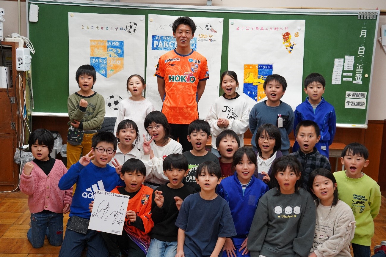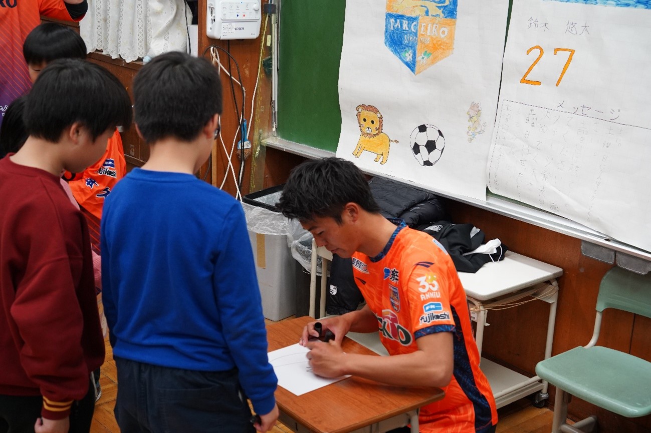 先日、鈴木悠太選手が須坂市立井上小学校3年松組を訪問し、子どもたちと交流をしました。