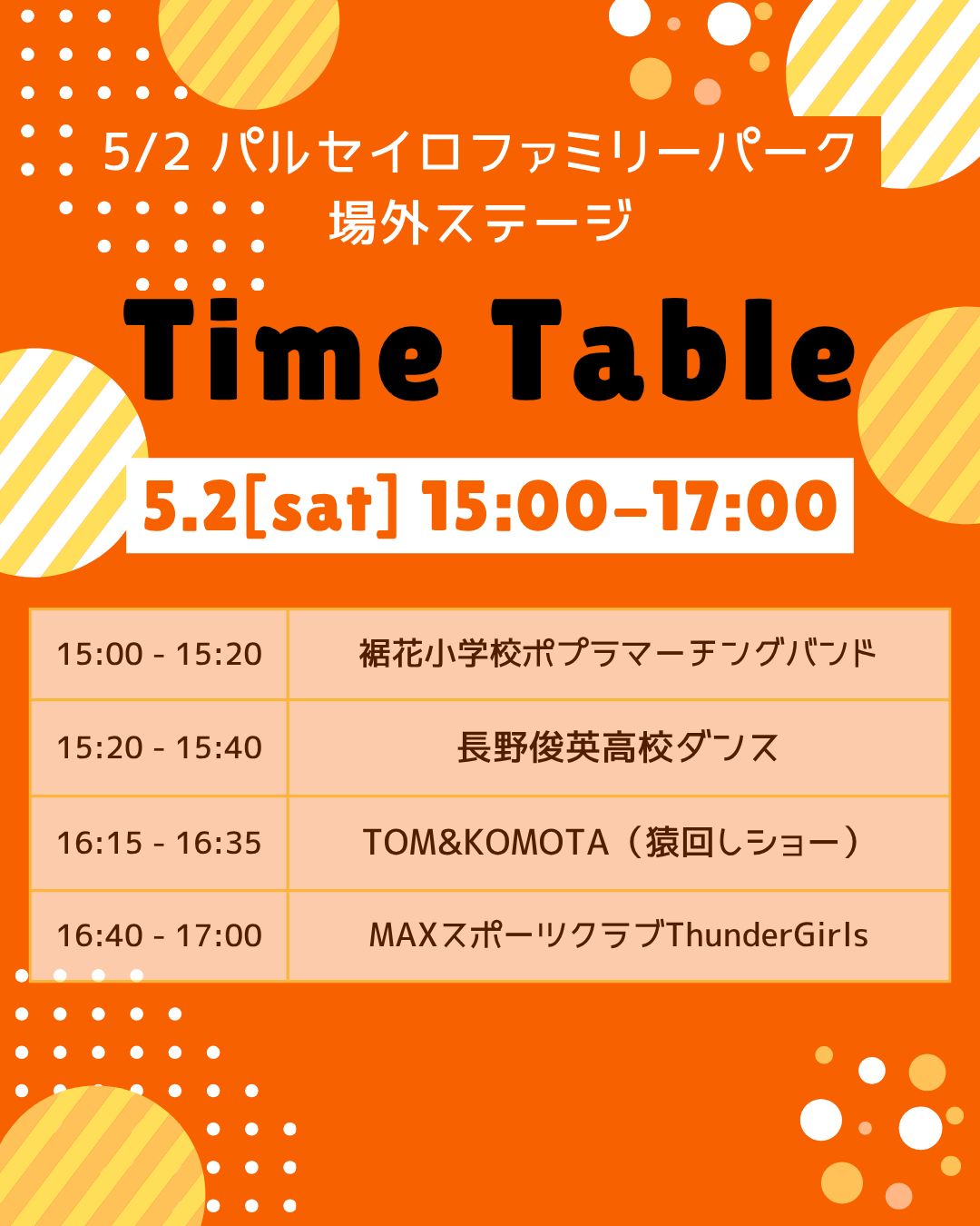 迫力満点の猿回しショーをはじめ、俊英高校ダンス部によるエネルギッシュなダンスパフォーマンス、裾花小学校マーチングバンド、そしてMAXスポーツクラブ Thunder Girlsによるチアパフォーマンスなど、会場を盛り上げてくれます!ぜひとも場外ステージにお越しください!詳細はこちら