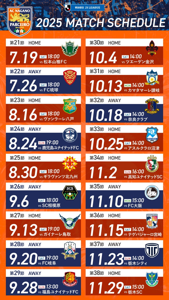 【PDF版はこちら】2025明治安田J3リーグ AC長野パルセイロ 年間日程