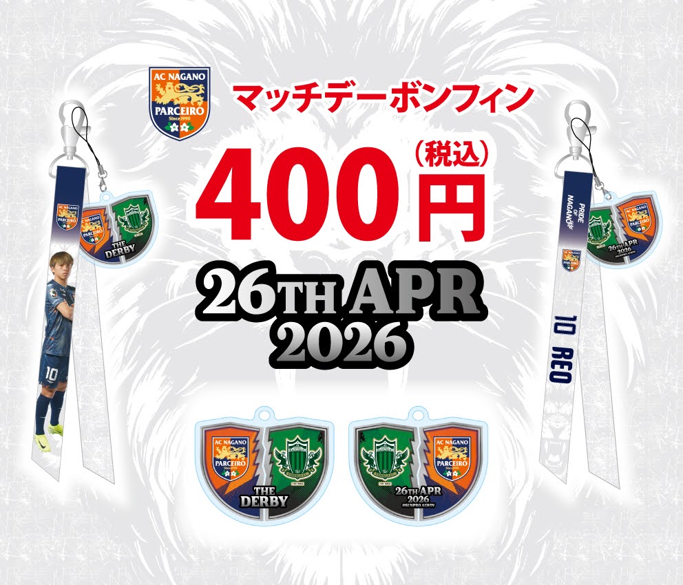 4月26日(日)アウェイ / サンプロ アルウィンにて開催される『明治安田J2・J3百年構想リーグ 第12節 vs.松本山雅FC』におきまして、AC長野パルセイロ オフィシャルグッズブースを出店いたします。下記の通り新グッズを発売いたしますので、お知らせいたします。