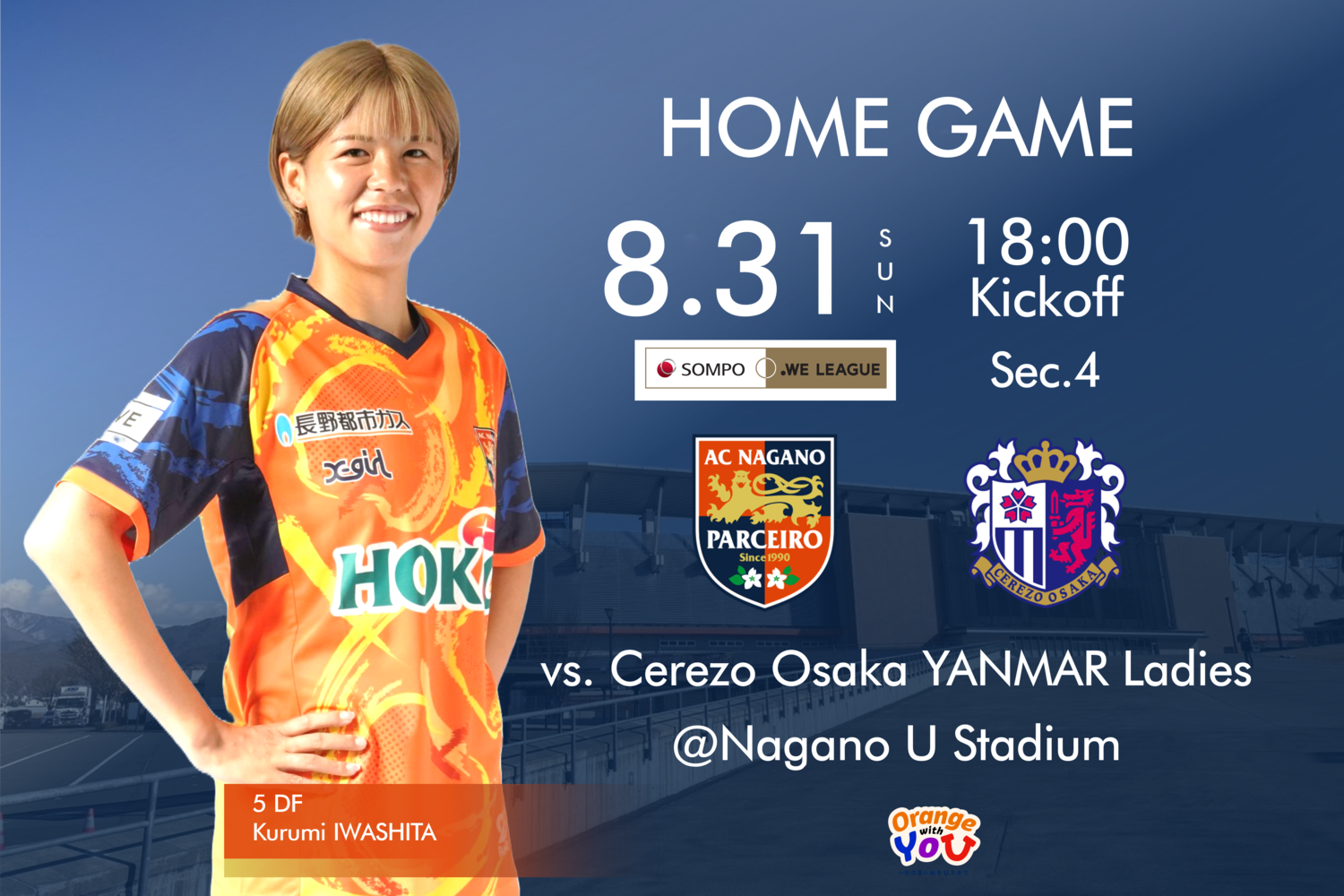 【イベント情報追記】8/31(日)2025/26 SOMPO WEリーグ 第4節 セレッソ大阪ヤンマーレディース戦 試合情報