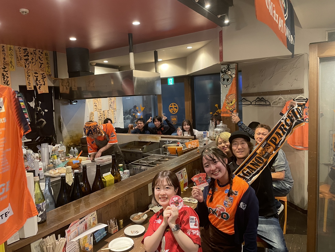 本企画は、両チームのサポーターの皆さまに試合前から試合後まで長野のまちを楽しんでいただくことを目的に実施したもので、長野駅周辺の12店舗の皆さまにご協力いただきました。詳細はこちら