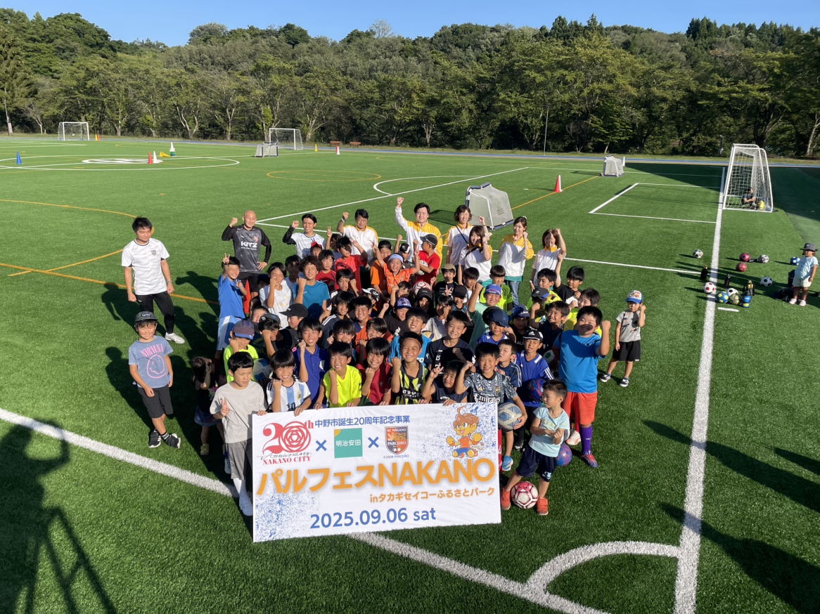 本イベントは、中野市様、明治安田長野支社様、株式会社長野パルセイロ・アスレチッククラブの連携事業として、また中野市生誕20周年記念事業として実施しました。詳細はこちら