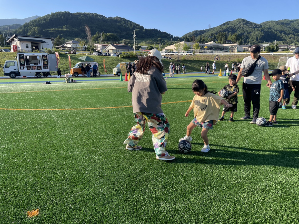 中野市在住の年中~小学校6年生を対象に、親子サッカー教室とシュートクリニックを実施しました。シュートクリニックには、パルセイロU18勝又監督が特別講師として登場。元プロ選手の直接指導に、子どもたちは目を輝かせながら全力でプレーしていました。親子サッカー教室も大盛り上がりで、最後のゲームでは転びながらも笑顔で駆け回る姿が印象的でした。