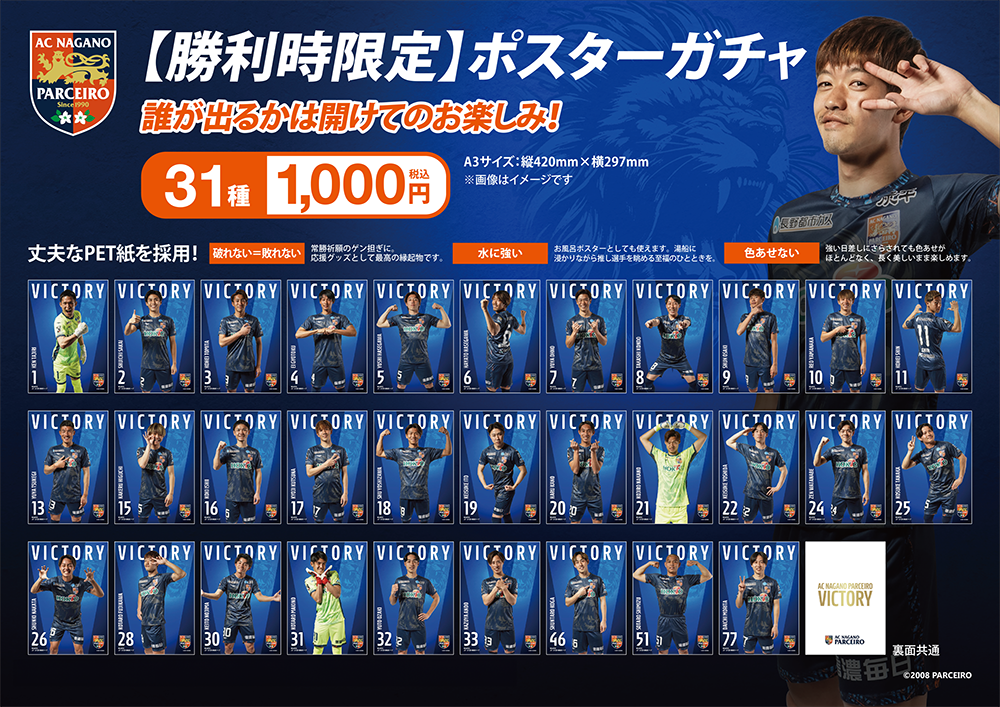 勝利時限定のプレイヤーズポスターガチャです。勝利の余韻に浸って下さい!