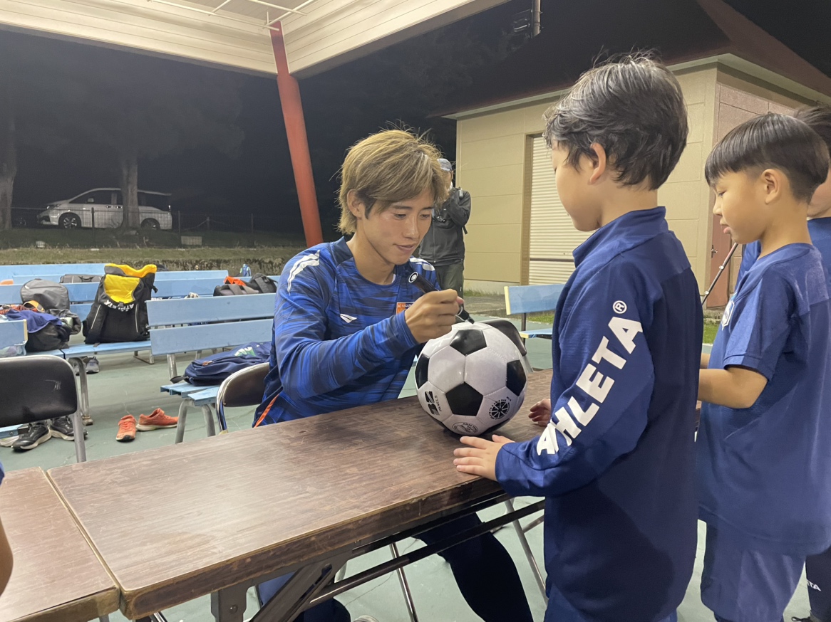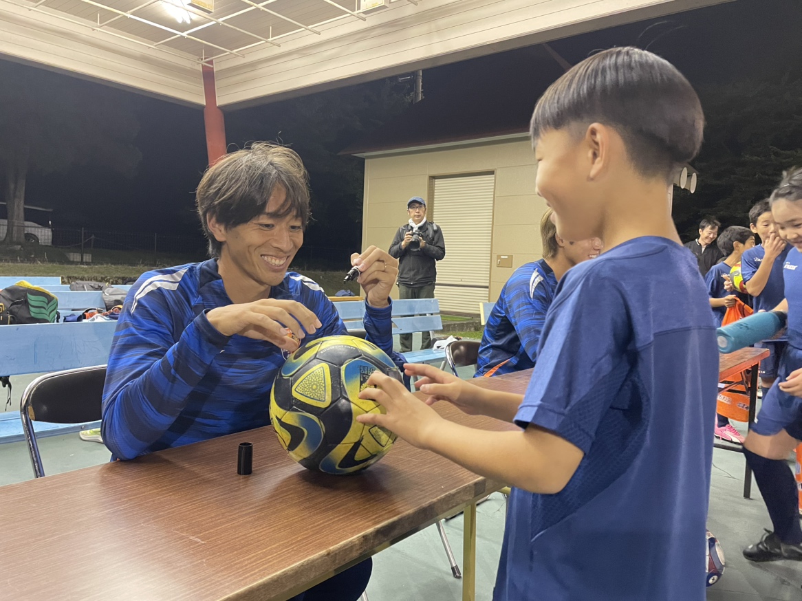 選手から子供たちには、「山ノ内町からプロサッカー選手が出ることが僕たちにとってもうれしいことなので、もっと練習してプロサッカー選手になってください」と熱い言葉をかけました。