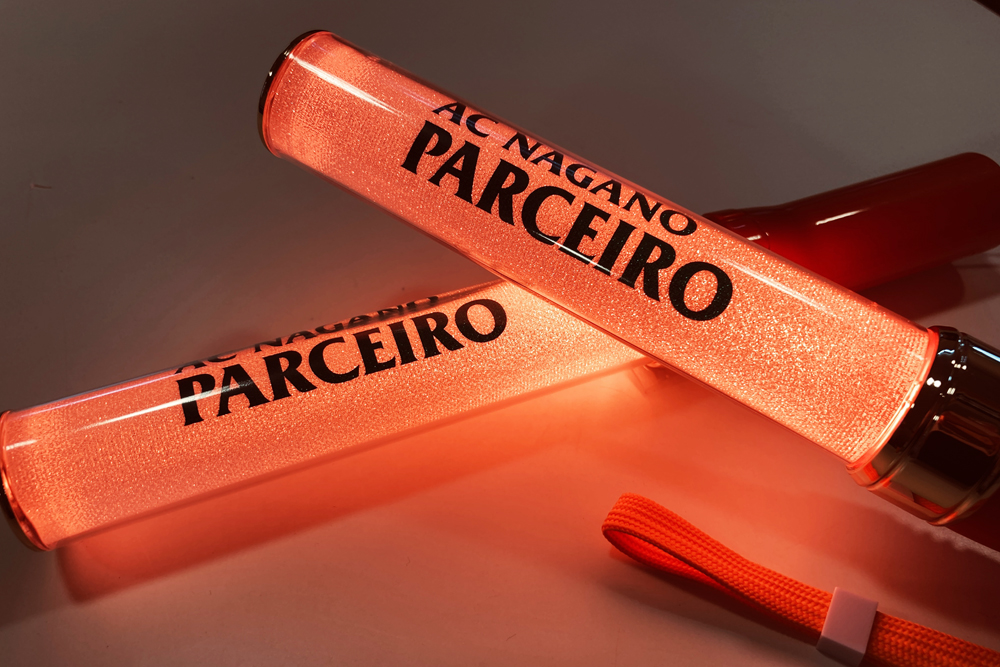 持ち手はオレンジで、発光部分にクラブロゴが施されたテンションの上がるデザイン。オリジナルストラップ付きで、点灯していない時も携帯しやすいタイプです。みんなでナイトゲームをオレンジに染め上げよう!!