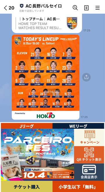 ①AC長野パルセイロ公式LINEを友だち登録