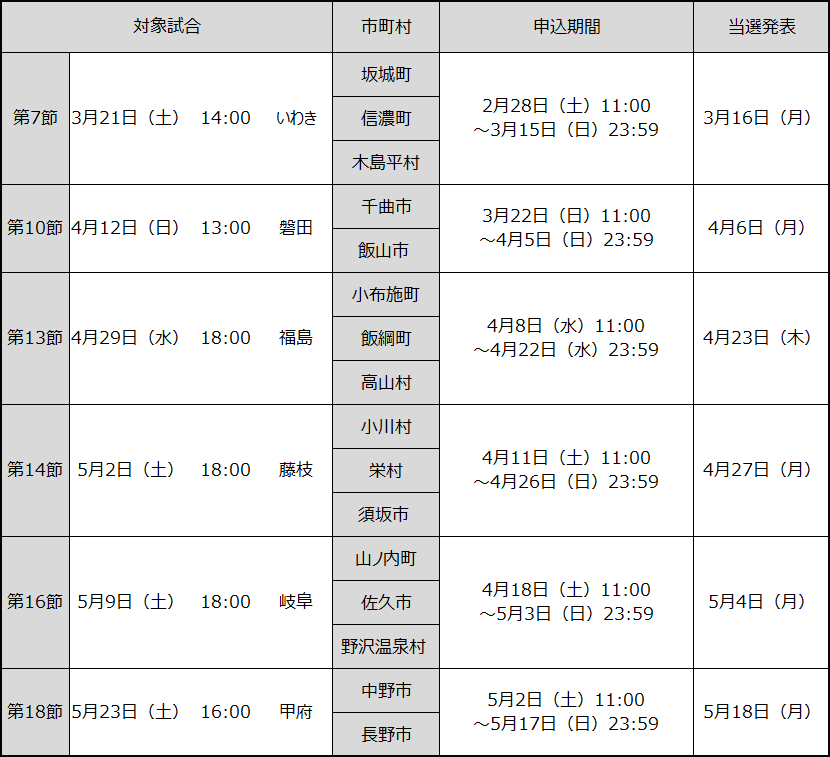 「ホームタウンデー」開催日に該当の市町村に在住の方抽選で100名様を無料でご招待いたします。