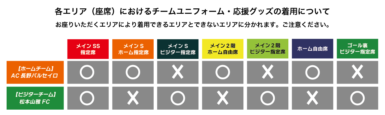 ・ビジターゴール裏(通常:ビジター自由席) → ゴール裏ビジター指定席 に改称、指定席化