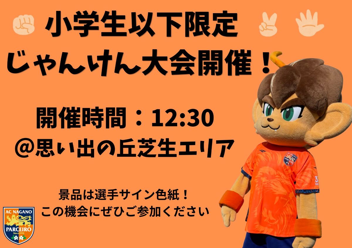 小学生以下のお子さま限定で、じゃんけん大会を開催いたします。見事勝ち残った方には、選手サイン色紙をプレゼント!皆さまのご参加をお待ちしております。