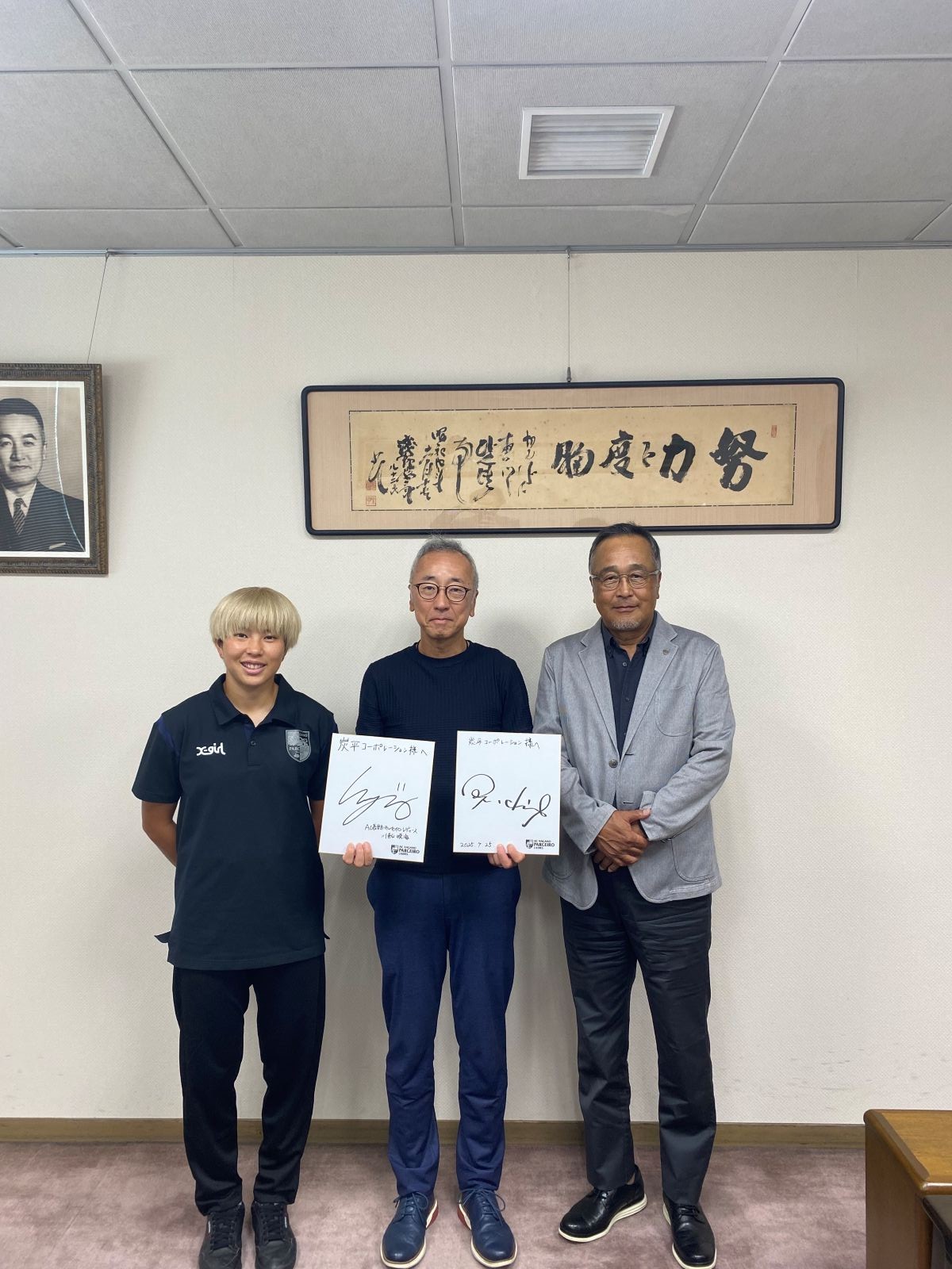 炭平コーポレーション株式会社様:代表取締役社長 鷲澤幸一様/クラブ訪問者:廣瀬監督、川船暁海選手