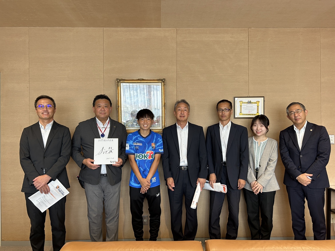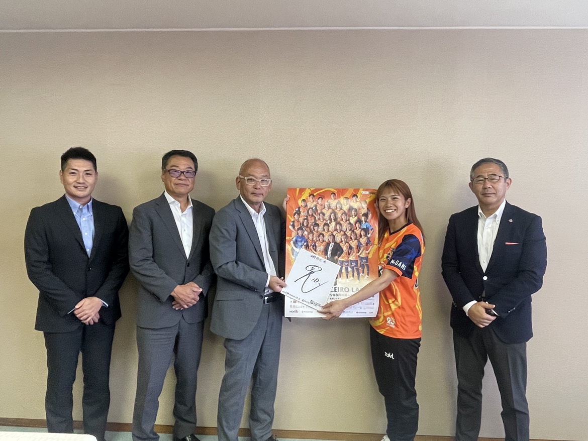8月9日(土)に開幕する2025/26 SOMPO WEリーグを前に、澁谷泰宏代表取締役社長・廣瀬龍監督・レディース選手が、ユニフォームパートナー、スペシャルパートナー、ゴールドパートナーならびにホームタウン16市町村の皆様を表敬訪問いたしました。