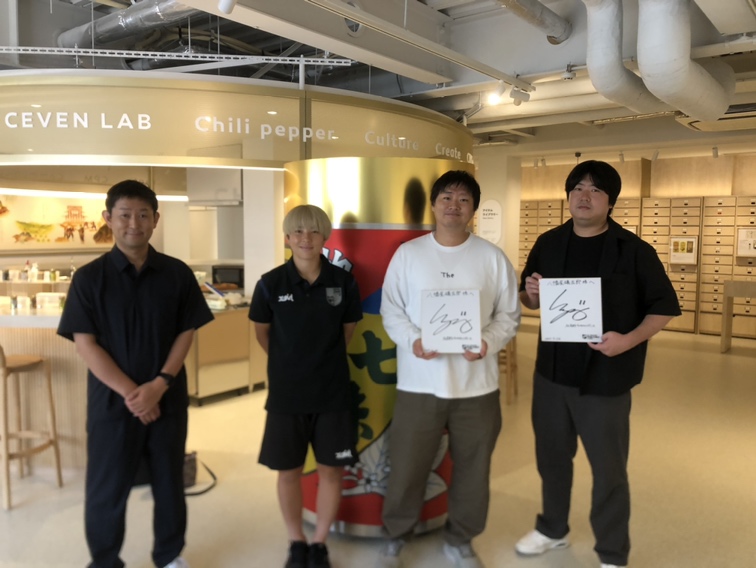 有限会社八幡屋礒五郎様:常務取締役 室賀 ゆう貴 様 、取締役 生産本部 本部長 室賀 晴和 様/クラブ訪問者:川船暁海選手