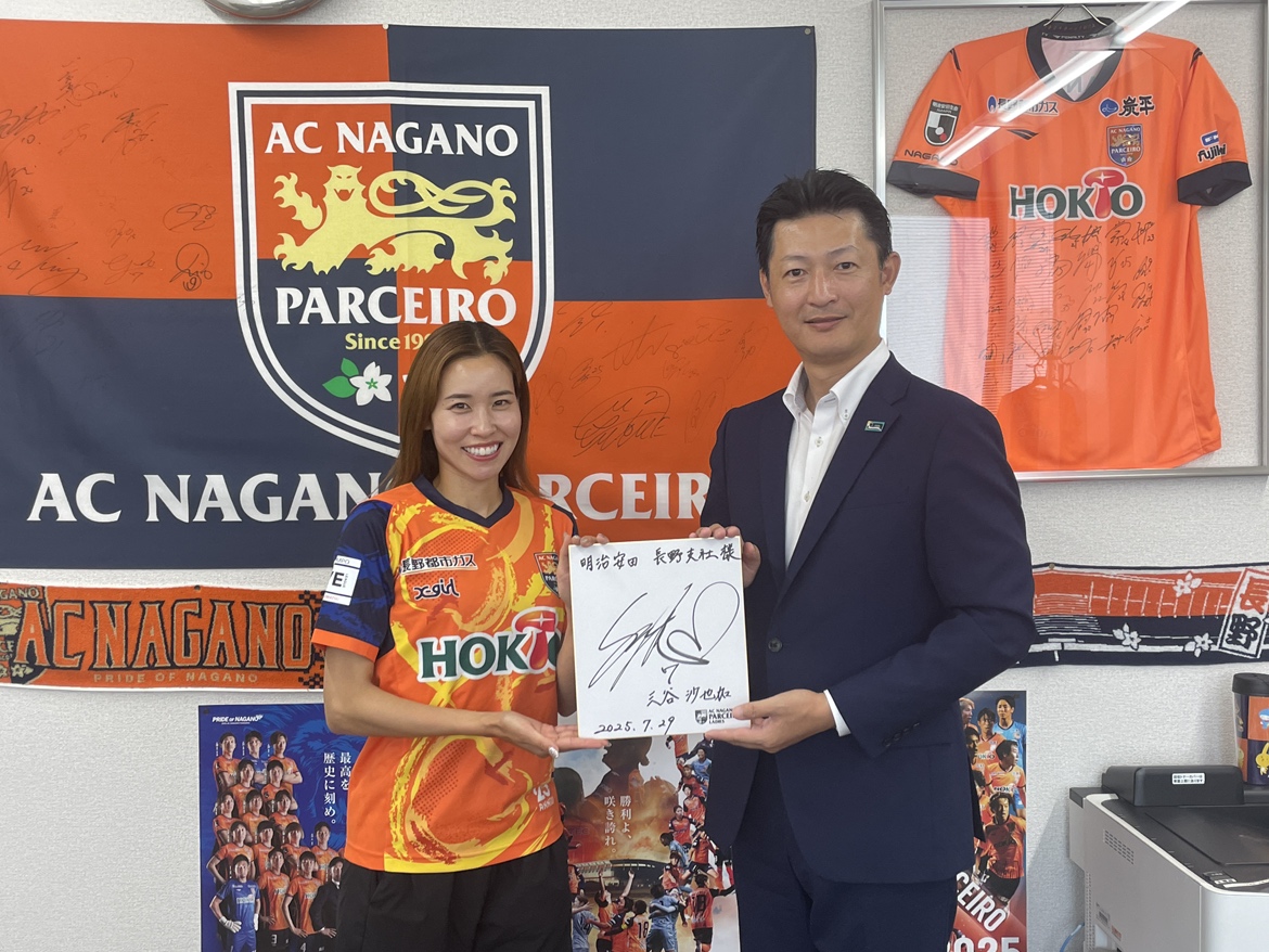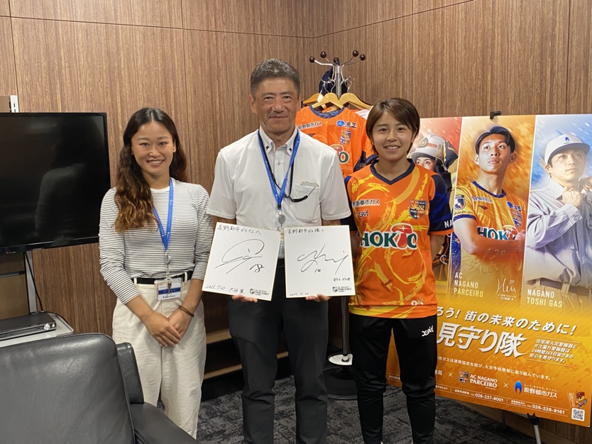 長野都市ガス様:代表取締役社長 中山 潔 様/クラブ訪問者:鈴木紗理選手、大坪菜選手