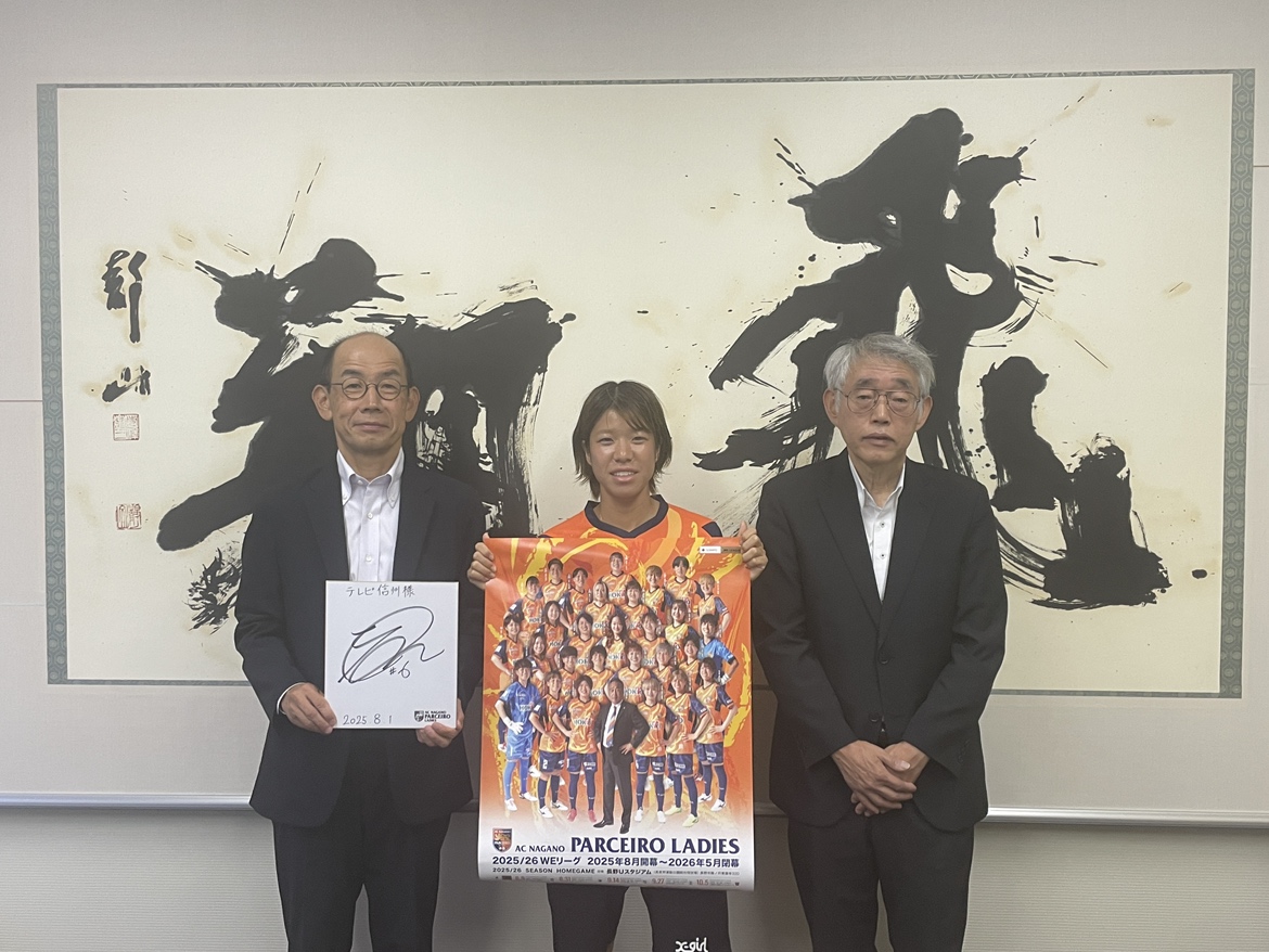 株式会社テレビ信州様:代表取締役社長 小谷野俊介 様 他/クラブ訪問者:原衣吹選手