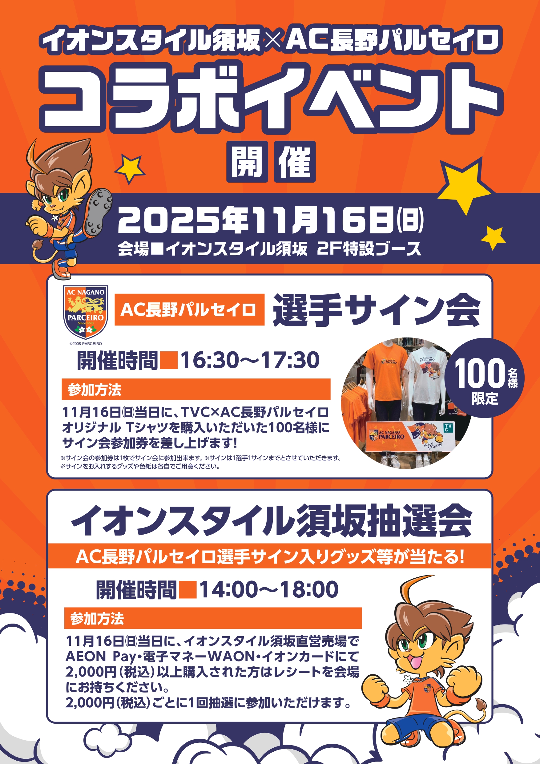 【参加選手決定】11/16(日)イオンスタイル須坂×AC長野パルセイロ選手サイン会実施