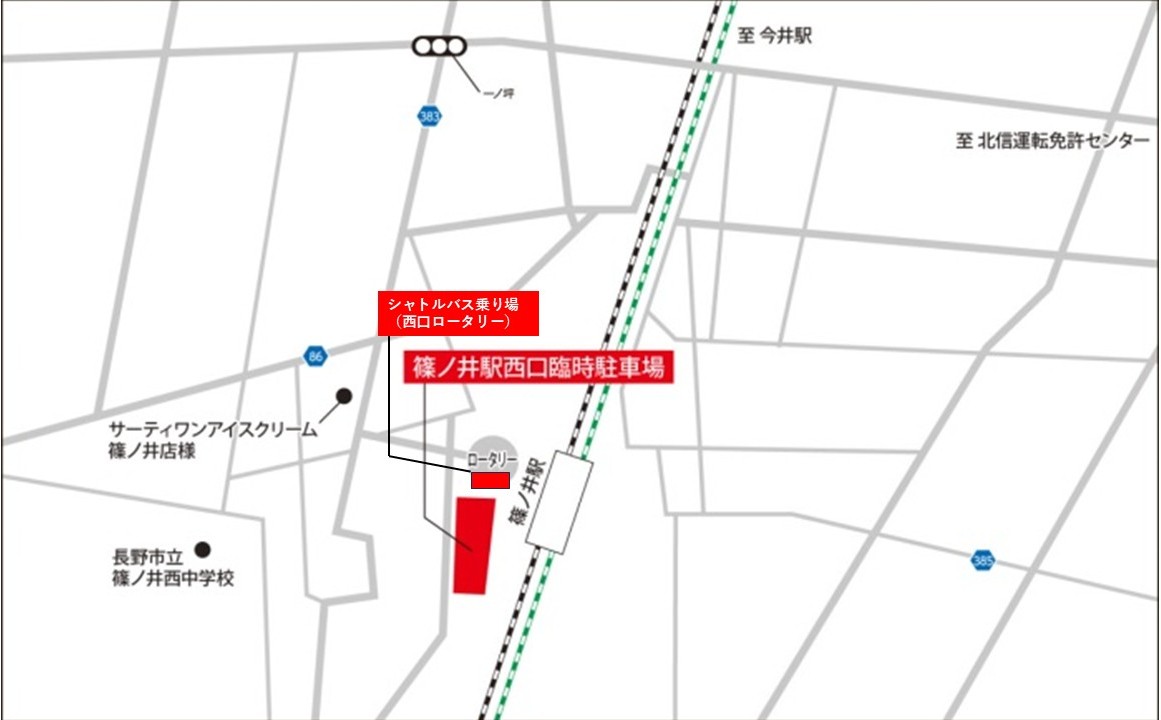 篠ノ井駅西口より運行されるシャトルバスを併せてご利用ください。