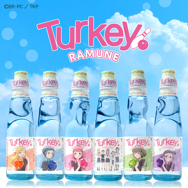 ラムネでシュワっと青春チャージ! Turkey!とのコラボラムネを販売!アニメと一緒にシュワっと爽やかなラムネをお楽しみください。※スタジアム内には、ビンは持ち込めません(移し替えコップでの販売)