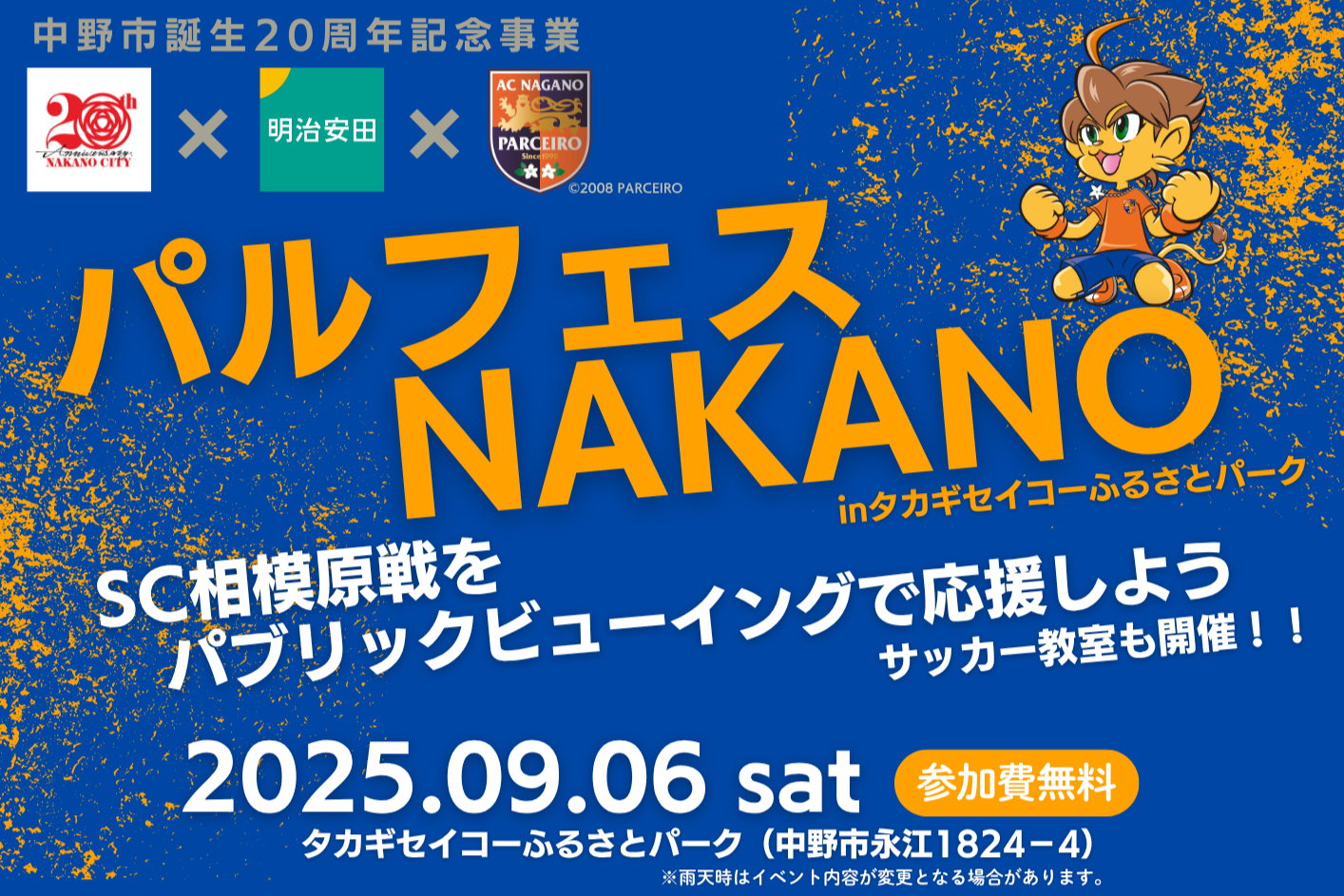 主催:中野市、明治安田 長野支社、株式会社 長野パルセイロ・アスレチッククラブ