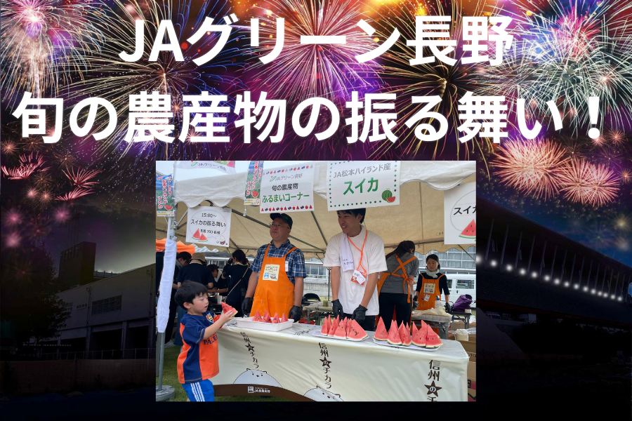 昨年、大好評を博した JAグリーン長野による旬の農作物の振る舞い が、今年の【オレンジ祭】にも帰ってきます!季節ならではの新鮮で美味しい農作物を、ぜひこの機会にご堪能ください。(スイカ700名:きゅうり/冷やしトマト300名(予定)数量限定のため、お早めに JAグリーン長野ブース へお立ち寄りください!詳細はこちら