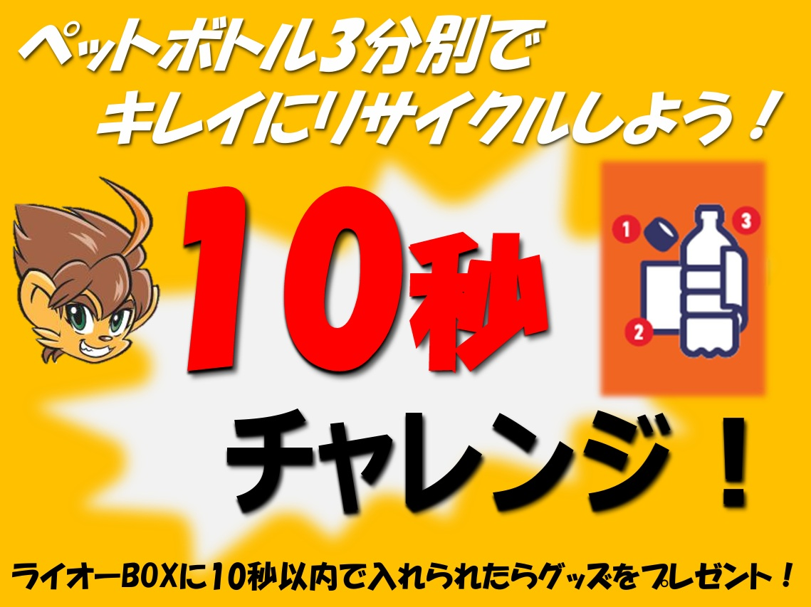 ボトル、ラベル、キャップを10秒以内に分別出来た方にはコカ・コーラグッズをプレゼントいたします。