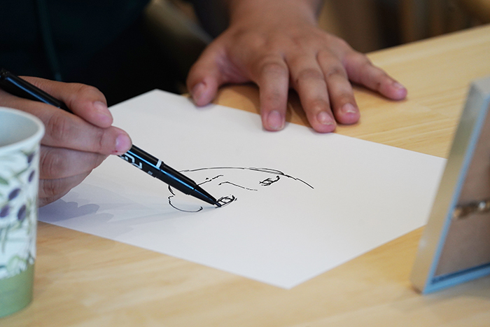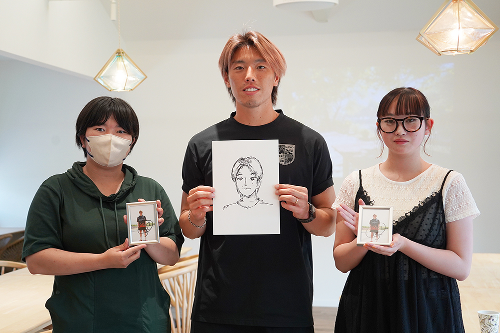さらに、長谷川選手からのリクエストにより、即興で似顔絵を描いていただくことに!「5分でこのクオリティ!」という完成度に、長谷川選手も感嘆していました。