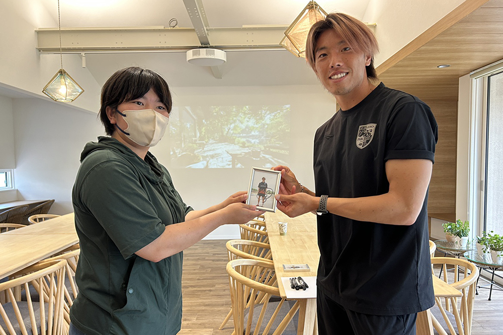 最後には、長谷川選手の直筆サイン入り写真を学生の皆さまへプレゼント。体調不良で参加できなかった学生の分は、先生を通じてお渡ししました。