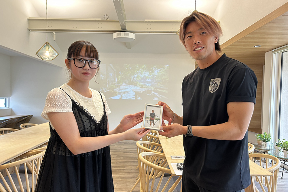 9月2日(火)、長谷川選手とともに、専門学校・岡学園トータルデザインアカデミーを訪問し、8月16日に配布した襟付きシャツのデザインにご協力いただいた学生の皆さまへお礼をお伝えしました。