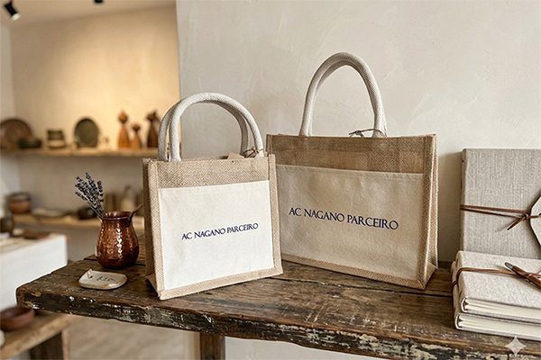 黄麻(こうま・ジュート)という植物繊維で作られた、耐久性と通気性に優れたナチュラルな風合いのバッグです。