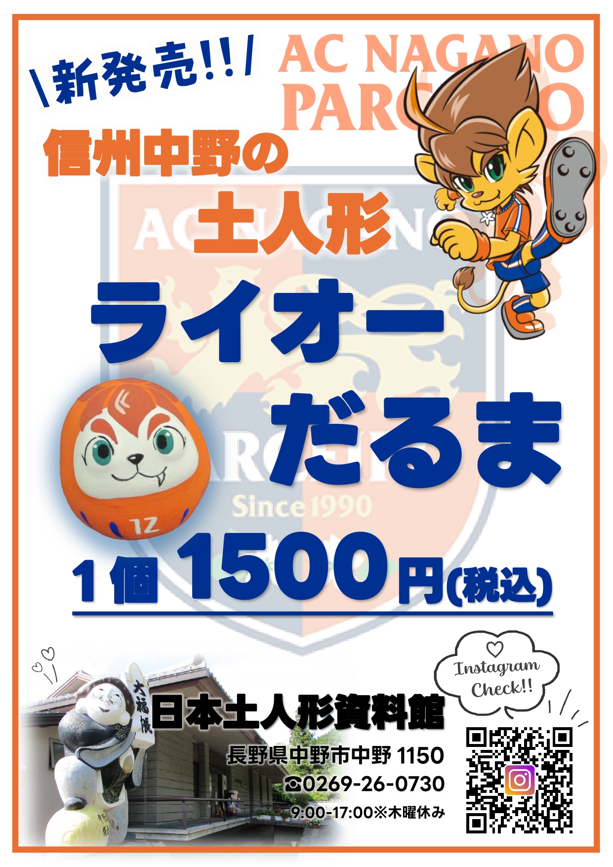 中野市ホームタウンデー当日限定!信州中野の土人形と特別コラボ「ライオーだるま」を販売!30個限定です。皆様お早めに!