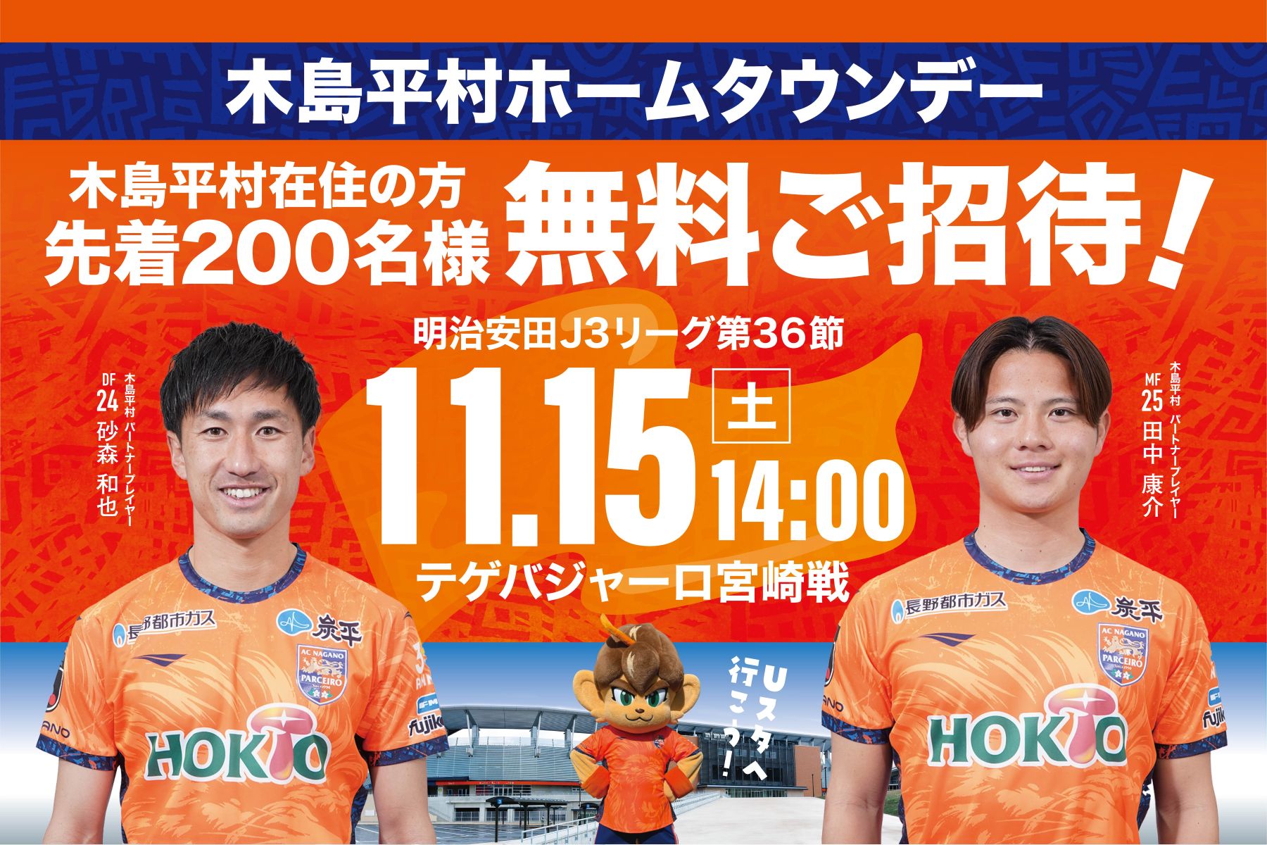 11/15(土)宮崎戦は、木島平村在住の方無料招待です!